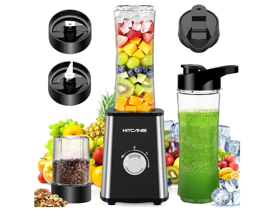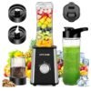 Mini Batidor 3 en 1, Batidora Eléctrica 800 W, 3 Velocidades Ajustables, 2 Botellas Portátiles de 600 ml Frutas, Verduras, Nueces