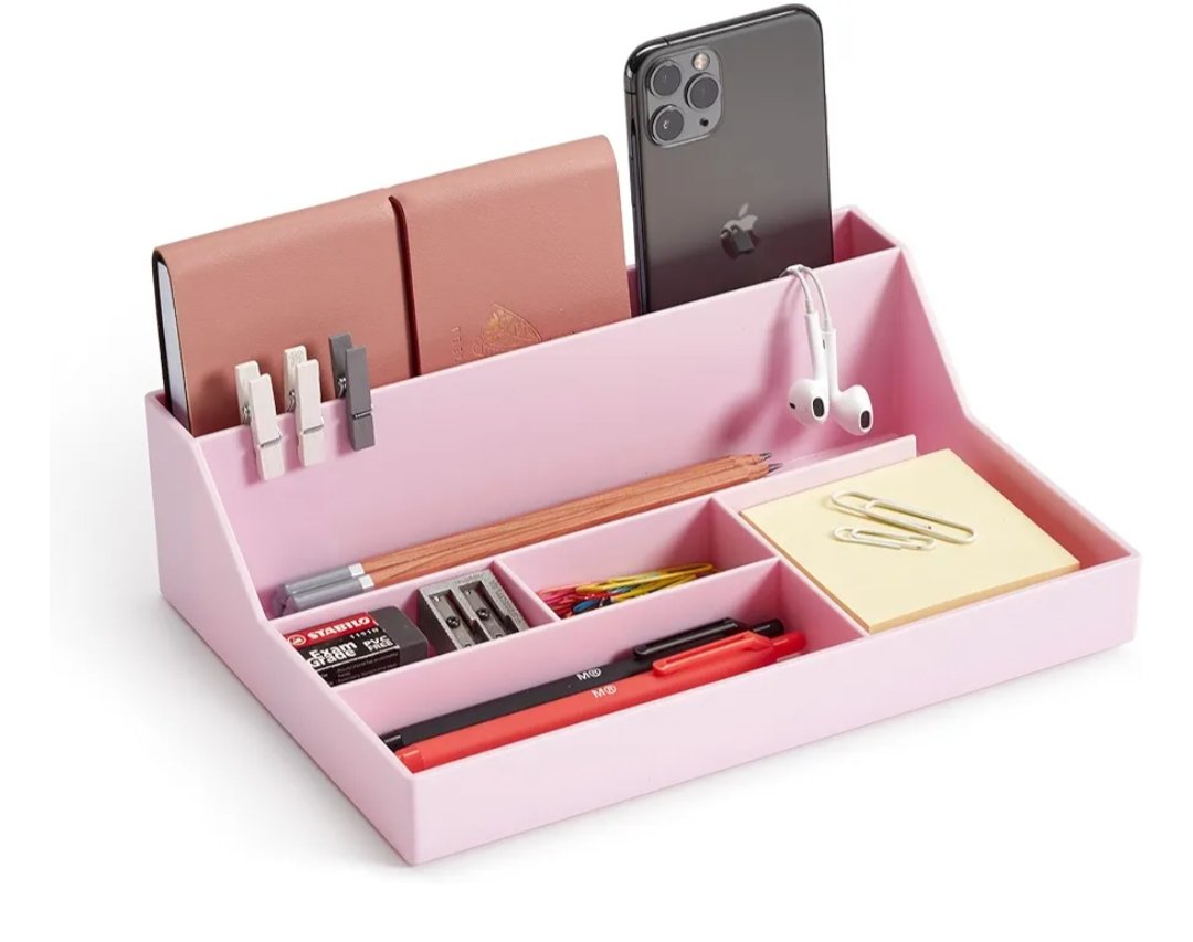 Miquelrius – Bandeja organizadora de sobremesa, Organizador de escritorio con gran capacidad, Tamaño 250 x 175 x 72 mm, Diseño compacto y resistente, Ideal para oficina y documentos, Color rosa