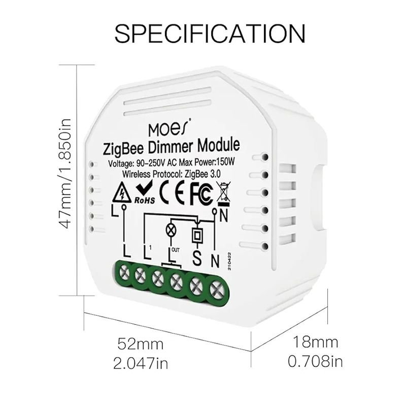 MOES ZigBee Mini Smart Alexa regulador de luz, módulo relé, interruptor inalámbrico LED, compatible con Smart Life Tuya Amazon Alexa Google Home. Funciona
