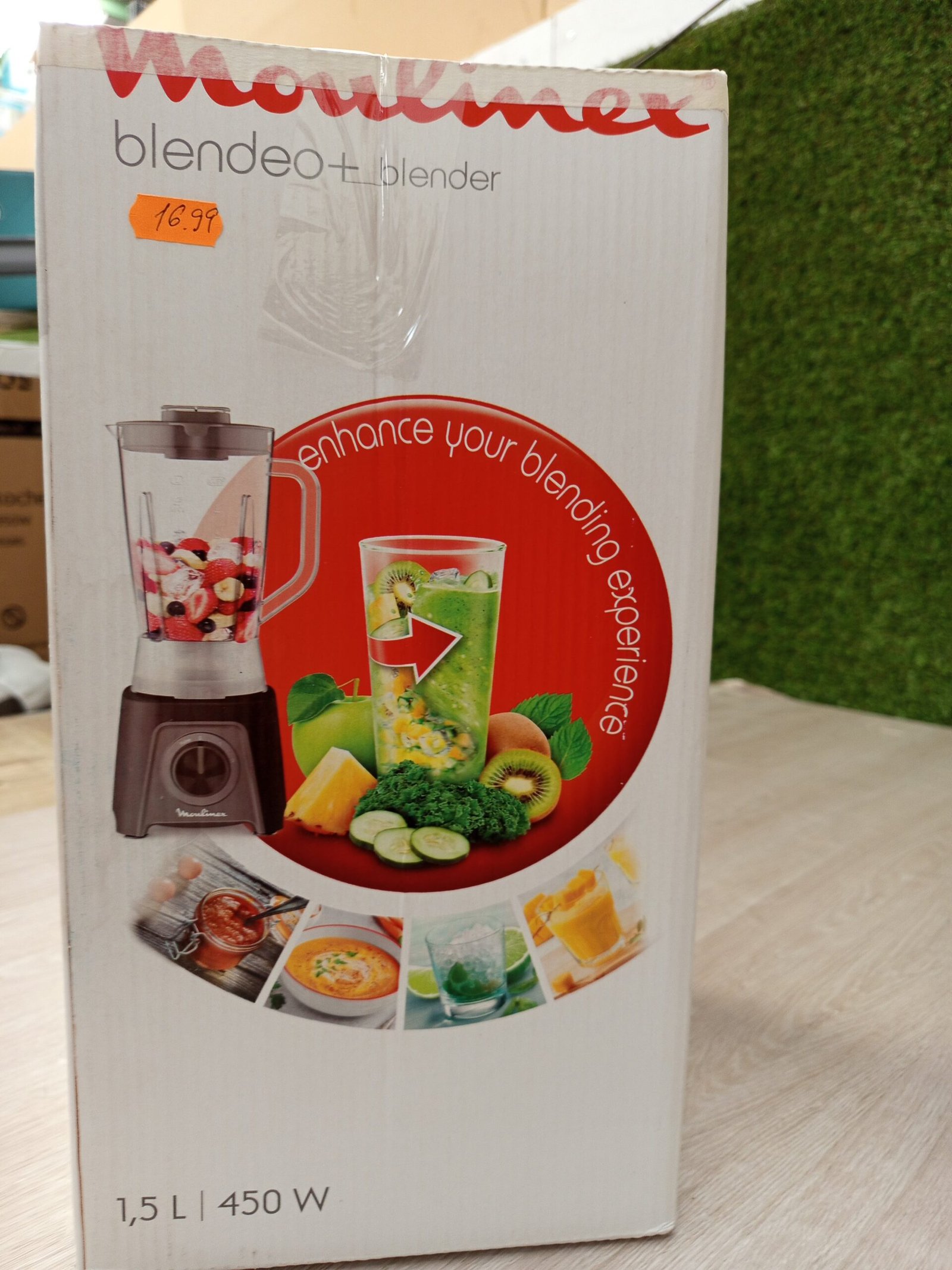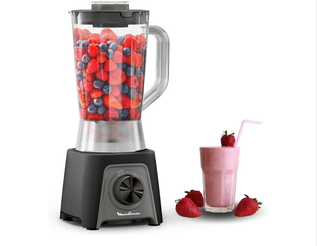 Moulinex Blendeo+, Batidora de vaso de 450 W, Jarra de 1,5 L, 2 velocidades + función Pulse, Pica hielo, Cuchillas extraíbles y muy resistentes, Gris