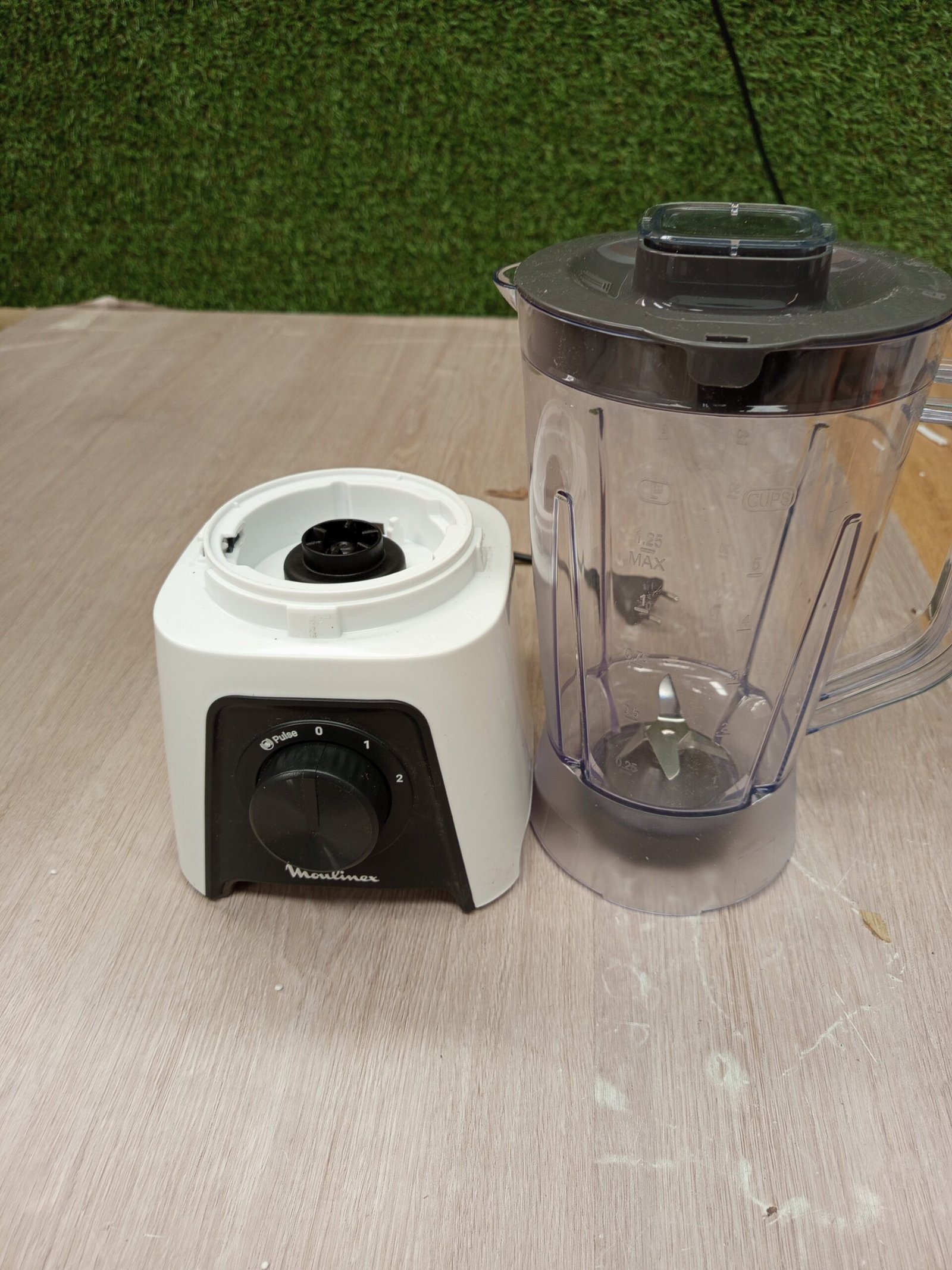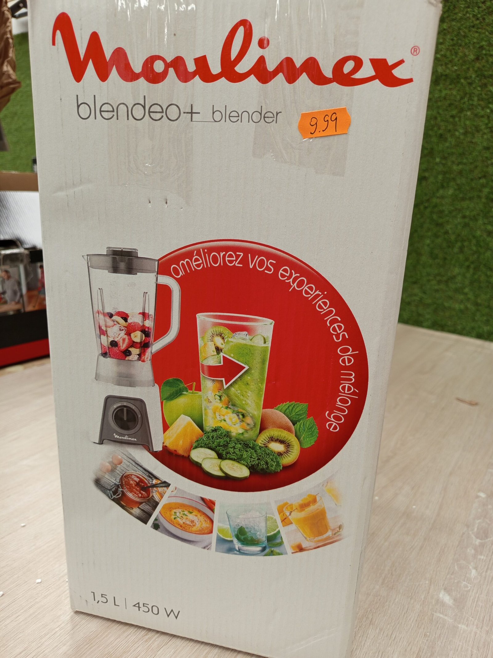 Moulinex Blendeo+, Batidora de vaso de 450 W, Jarra de 1,5 L, 2 velocidades + función Pulse, Pica hielo, Duraforce Label, Sistema de bloqueo inteligente, Cuchillas extraíbles, Blanca