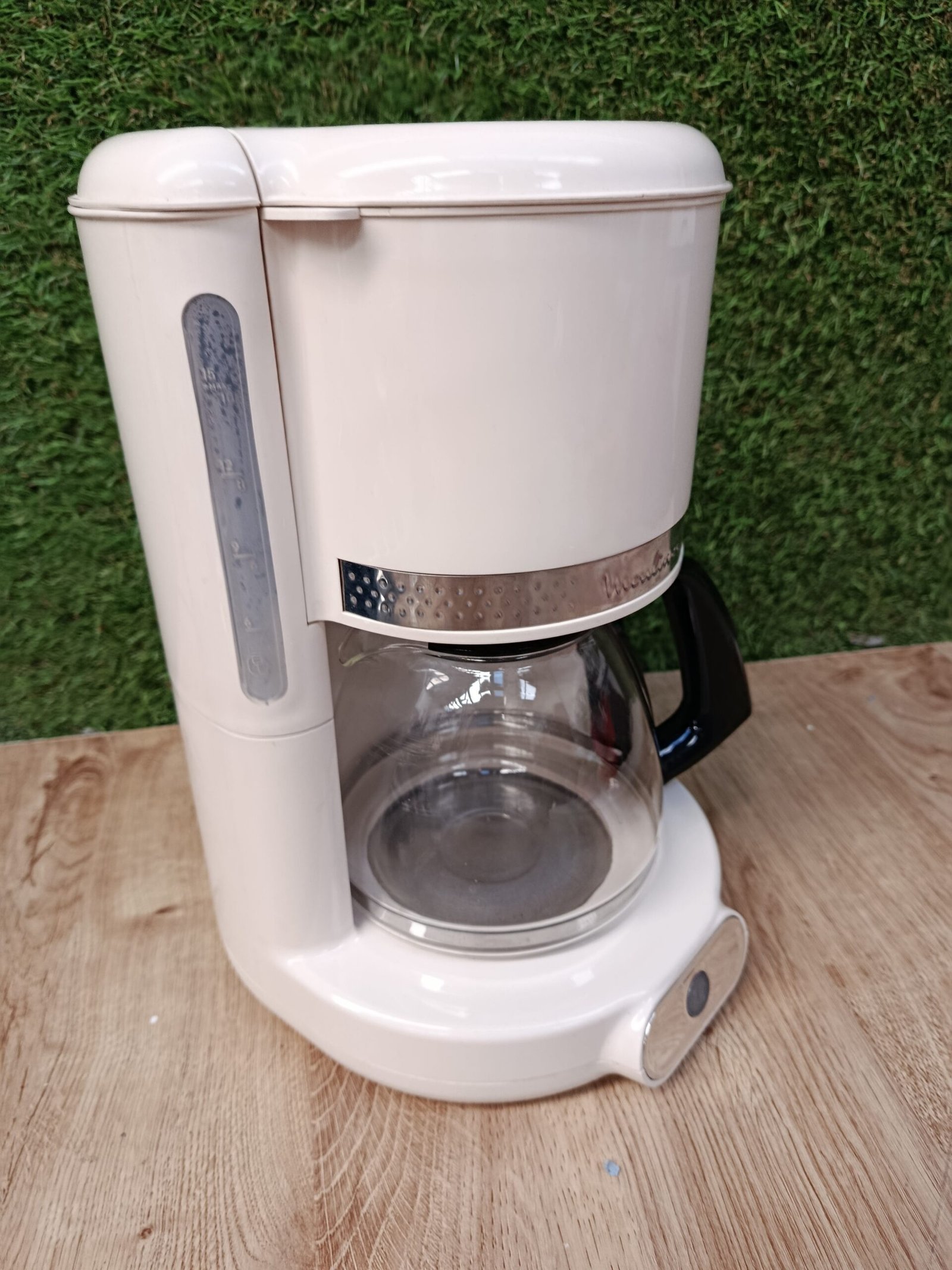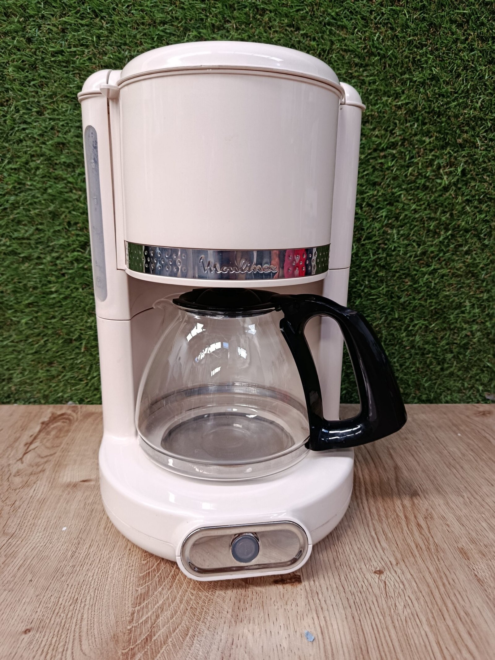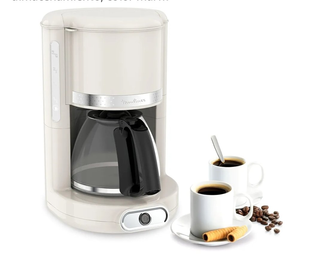 Moulinex Cafetera filtro Soleil FG381A – Cafetera de filtro vintage de 1000 W, capacidad de 1,25 L, jarra de cristal, sistema antigoteo, apagado automático, fácil almacenamiento, color marfil