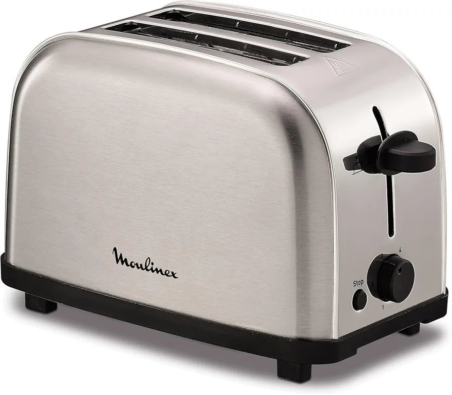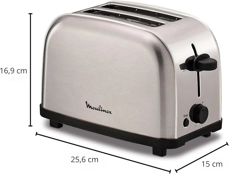 Moulinex Classic LT330D – Tostador de Acero Inoxidable, 2 Ranuras Cortas para 2 Rebanadas de Pan, 6 Posiciones de Tostado con Función Stop y Bandeja Recogemigas, Apto para Todo Tipo de Pan