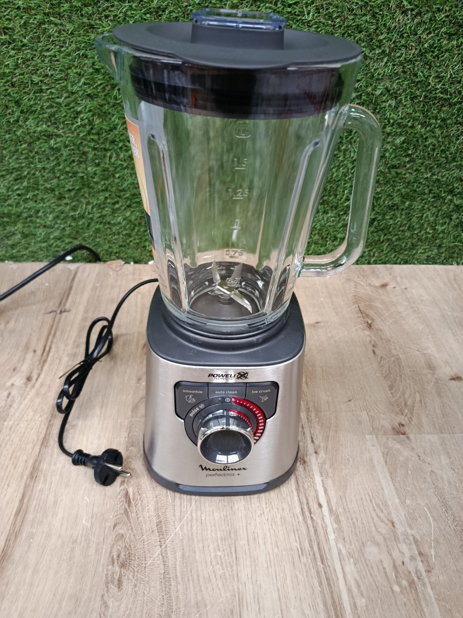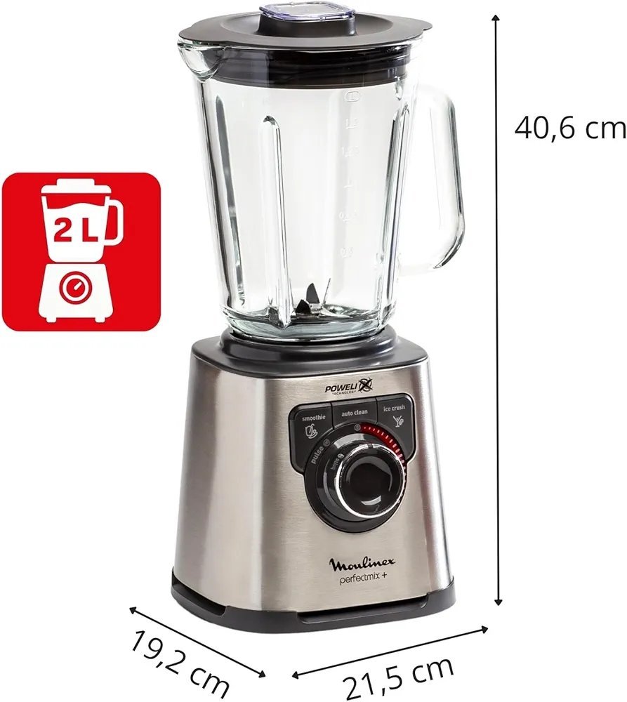 Moulinex Perfect Mix+, Batidora de vaso 1200 W, jarra de vidrio resistente, acabados en acero inoxidable, selector de velocidad retroiluminado, 3 programas automáticos, modo manual y autoclean, LM811D