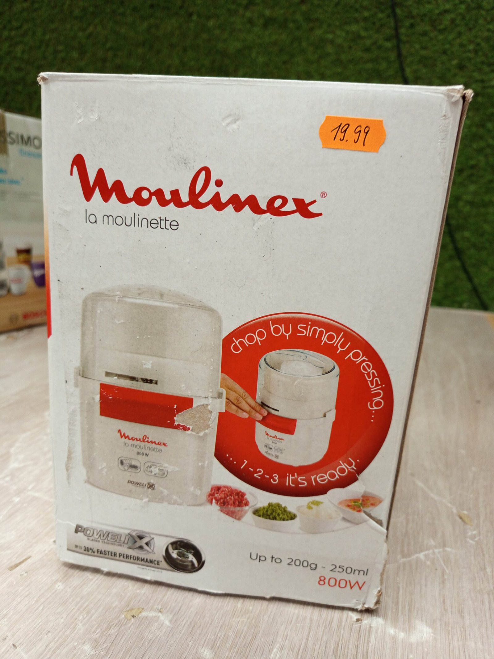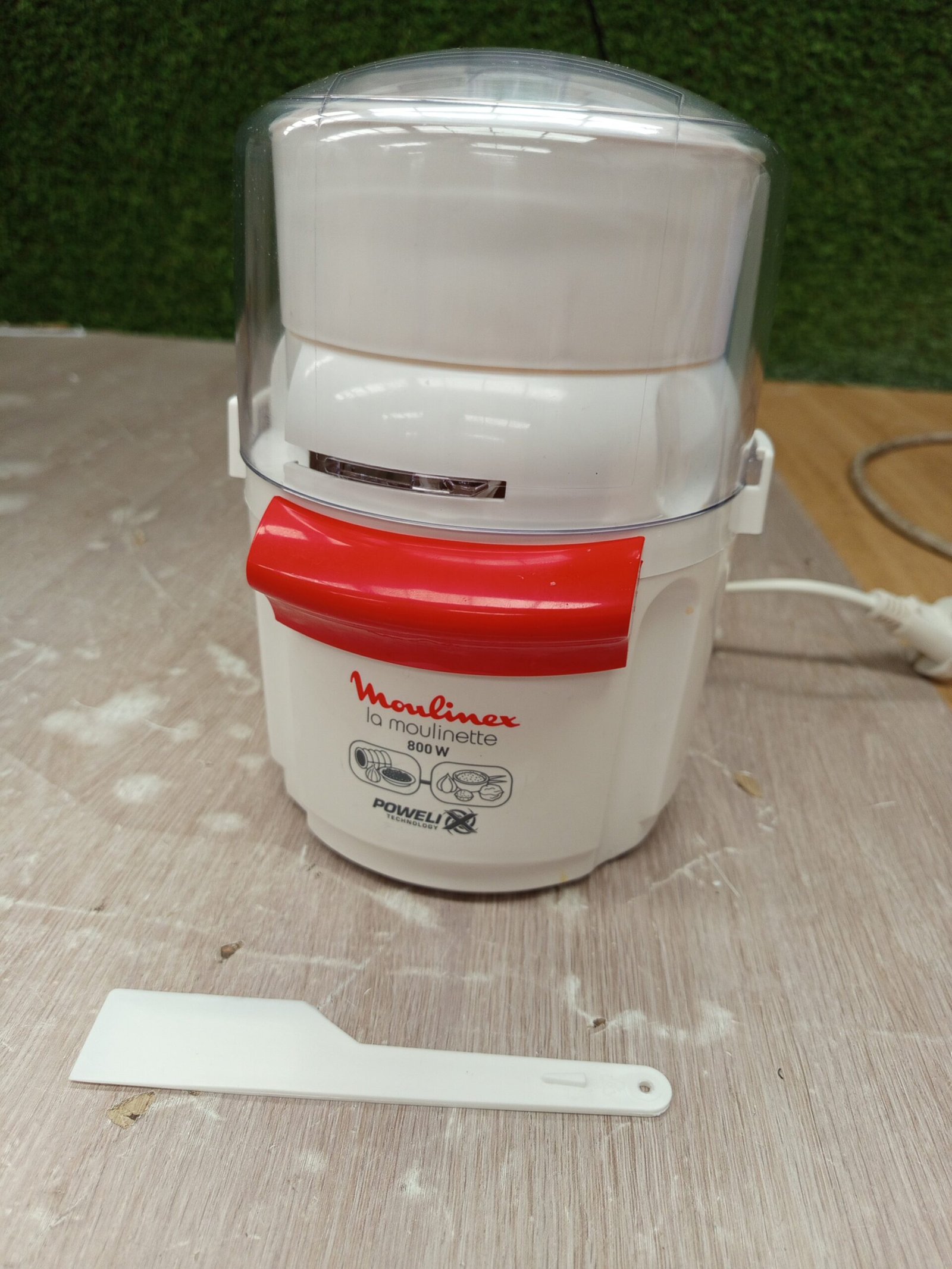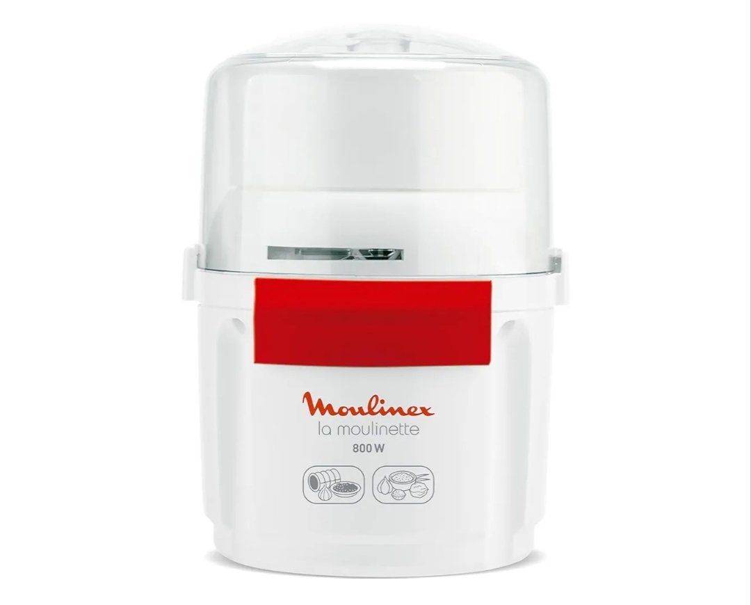Moulinex Picadora la Moulinette, picadora de 800 W, pica carne, verduras, frutos secos, queso, 200 gr capacidad, pica, corta o mezcla, sistema 1-2-3, cuchilla doble acero inoxidable, blanco
