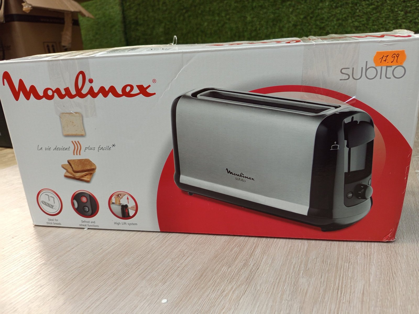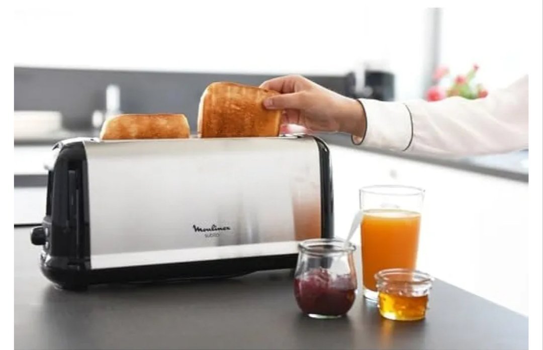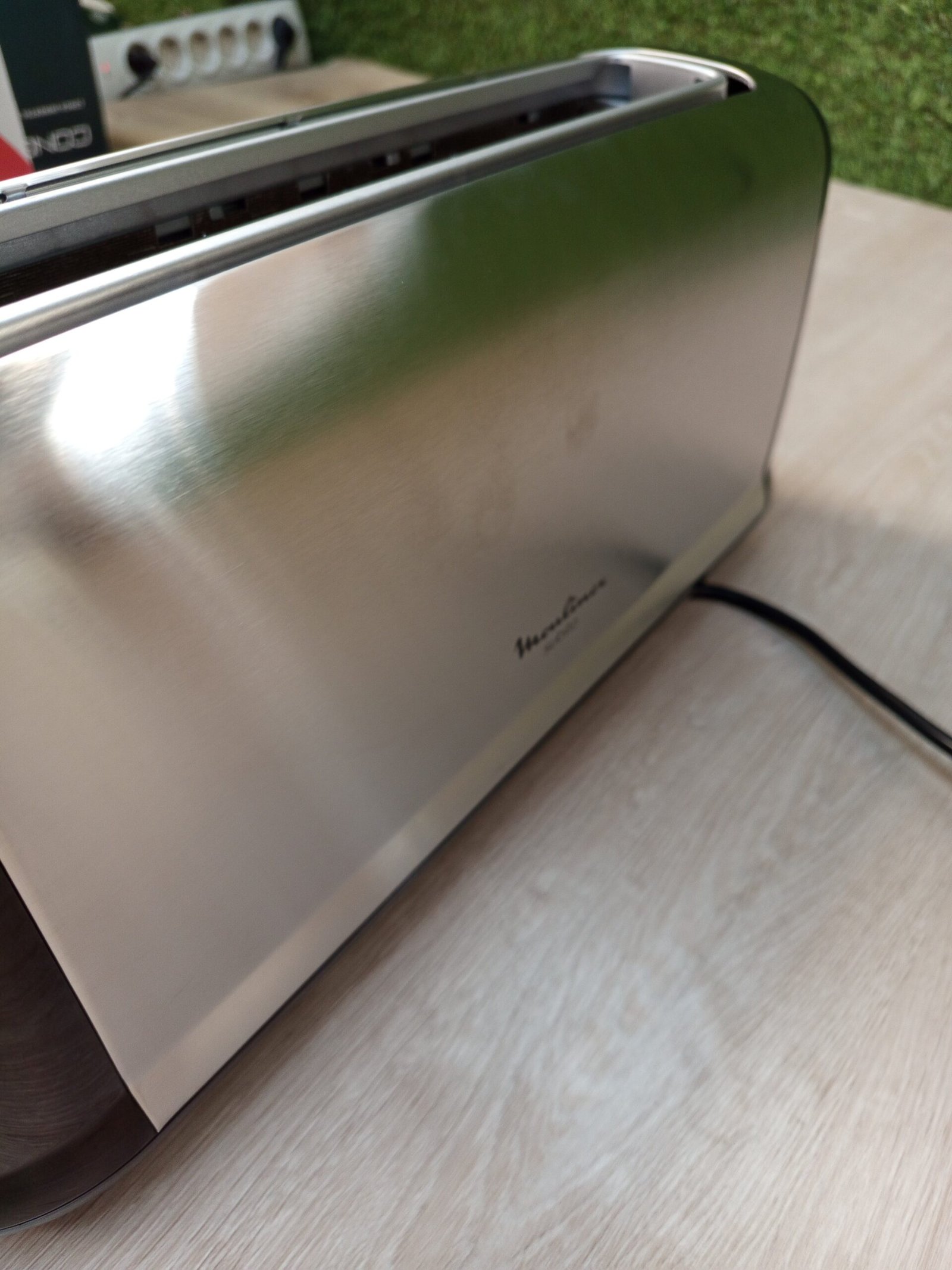 Moulinex Subito – Tostadora 1 ranura extragrande, 1000 W, 7 ajustes/tiempo de tostado, función Stop, bandeja recoge-migas, 2 funciones descongelar y recalentar, Negro/Acero Inoxidable
