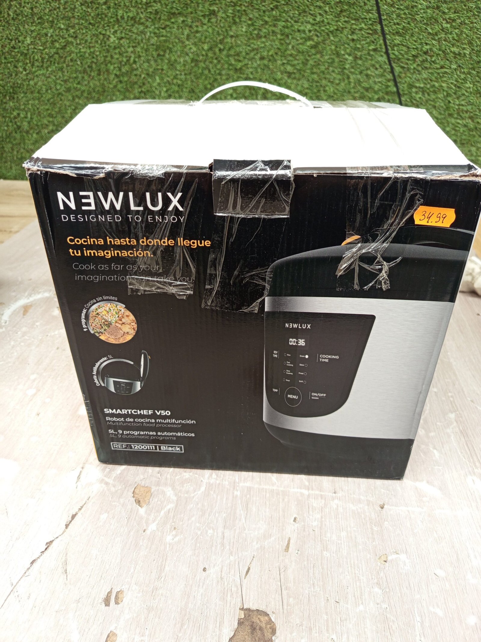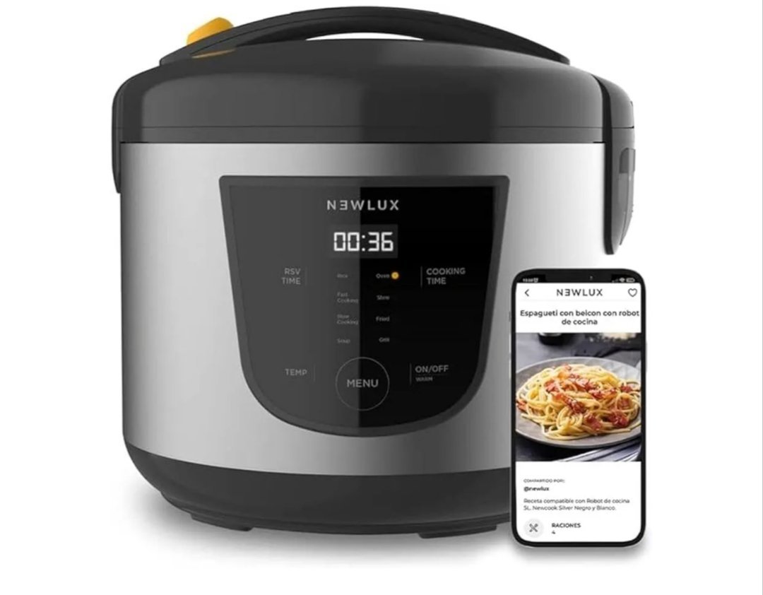 NEWLUX – Robot de Cocina Multifunción 5L SmartChef V50 con Cubeta Antiadherente, Programable 24H, 9 Funciones y 8 Menús automáticos. Mantiene Caliente 24H, Negro