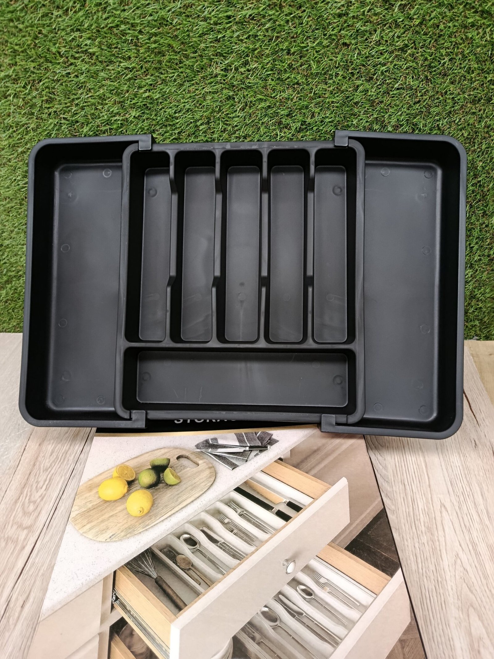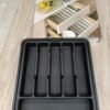 Organizador de cajones ajustable, bandeja de almacenamiento expandible para utensilios retráctiles, caja de vajilla con 8 compartimentos para vajilla, cosméticos, joyas, papelería, color