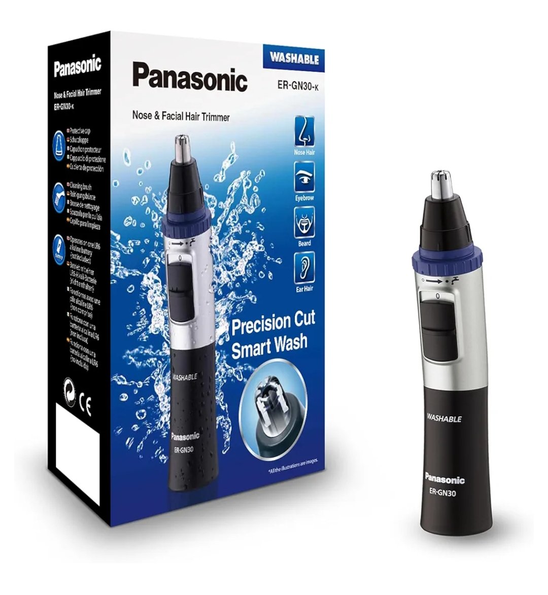 Panasonic ER-GN30-K503 Recortadora De Vello Facial para Nariz y Orejas, Húmedo/Seco, Cuchilla Hipoalergénica de Doble Filo, Sistema de Limpieza Vortex, Inalámbrico, Negro