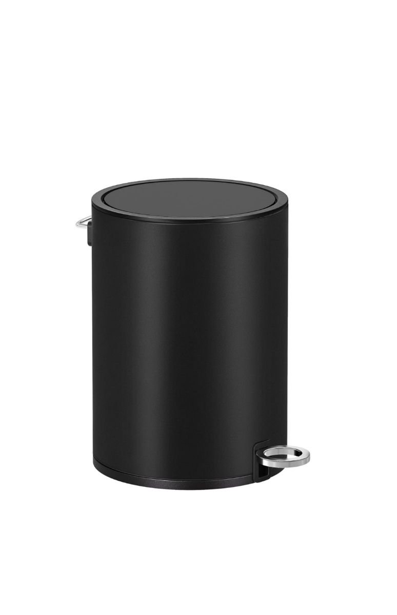 Papelera de baño SONGMICS, de metal y color negro. Tiene una capacidad de 3 litros. Es elegante y compacta, ideal para cualquier baño.