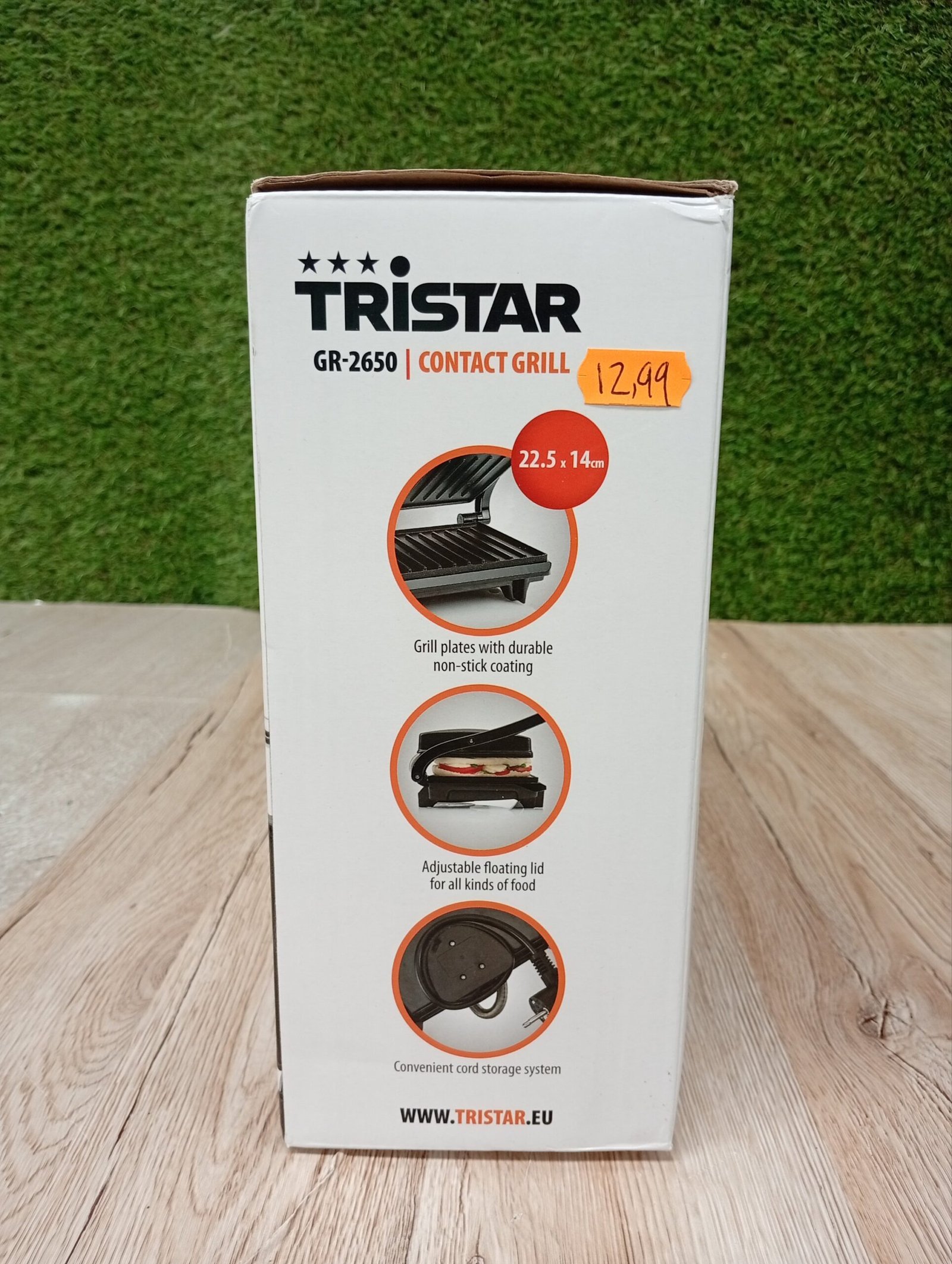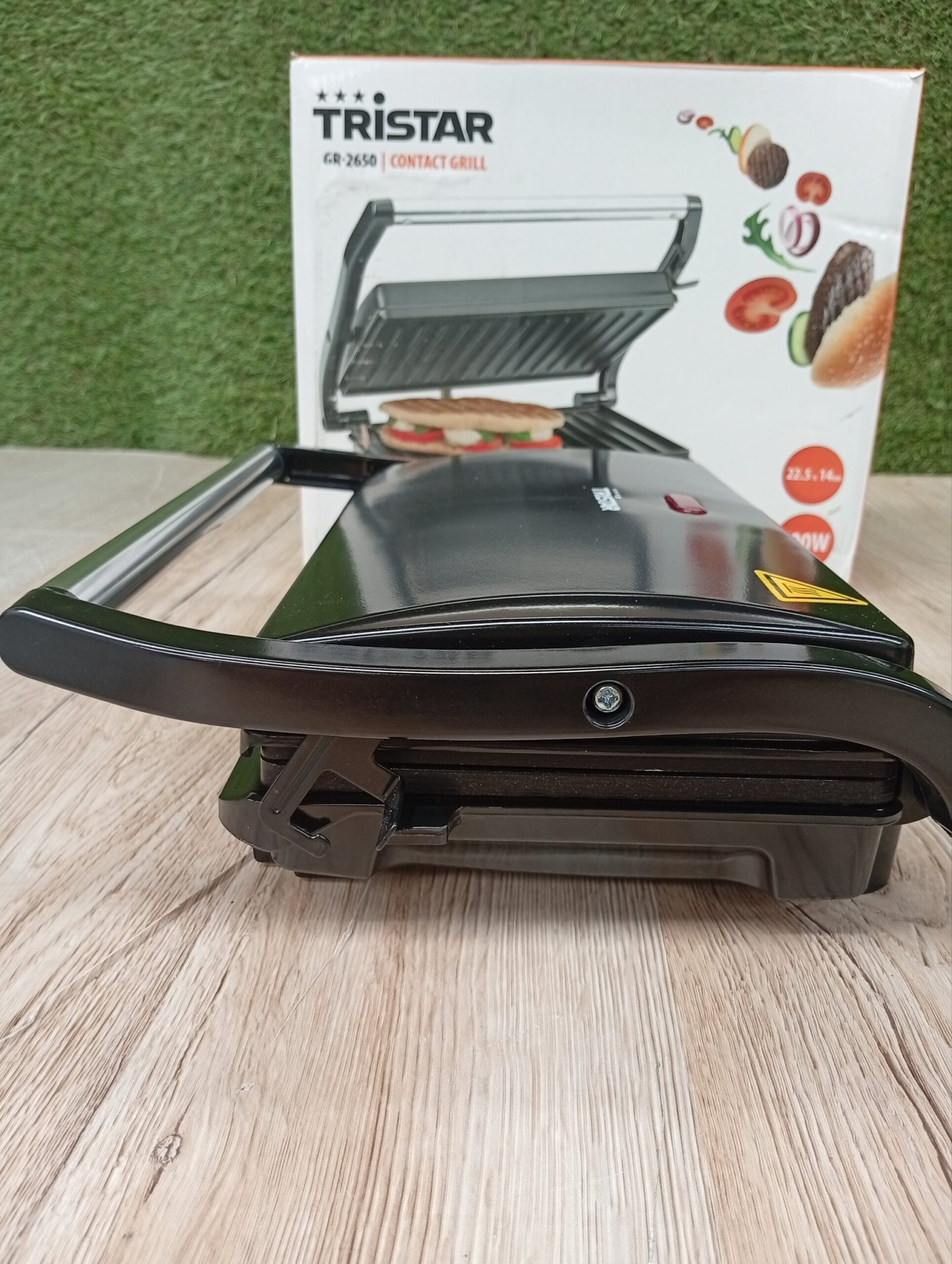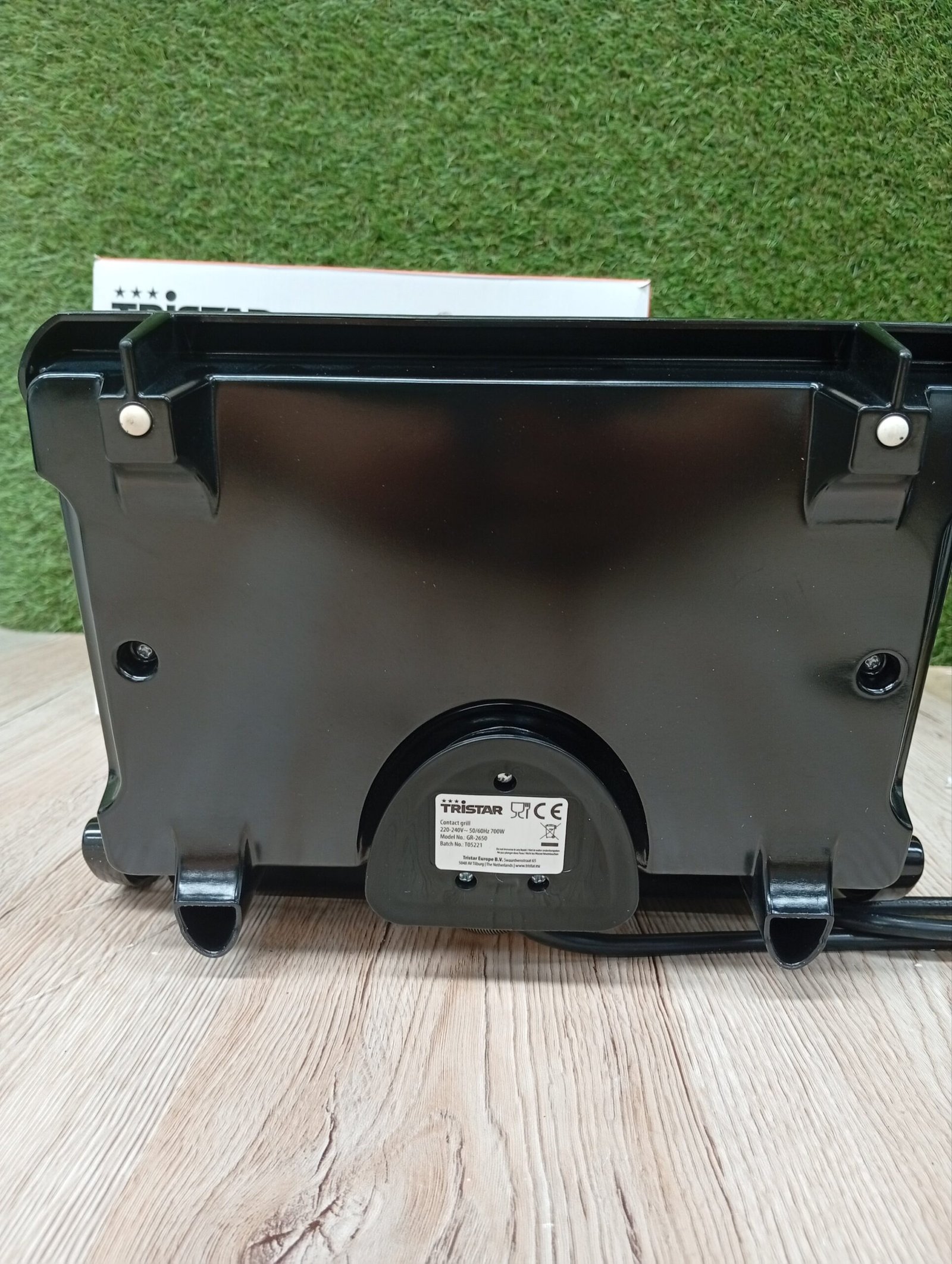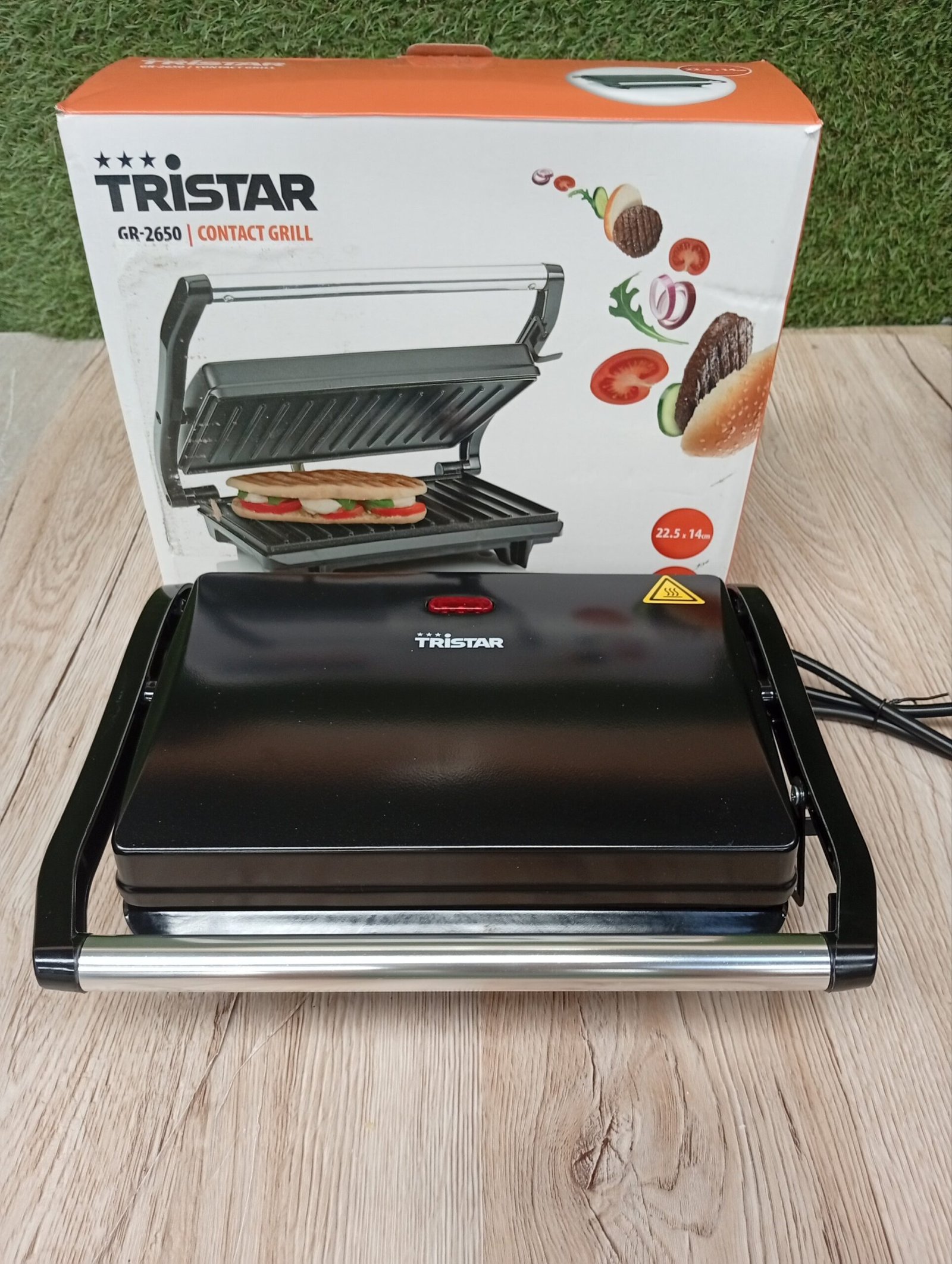 Tristar GR-2650 Parrilla eléctrica con superficie de cocinado de 22.5 x 14 cm, revestimiento antiadherente, tapa flotante, libre de BPA y PFOA, almacenamiento para el cable, 700 W, Color Negro