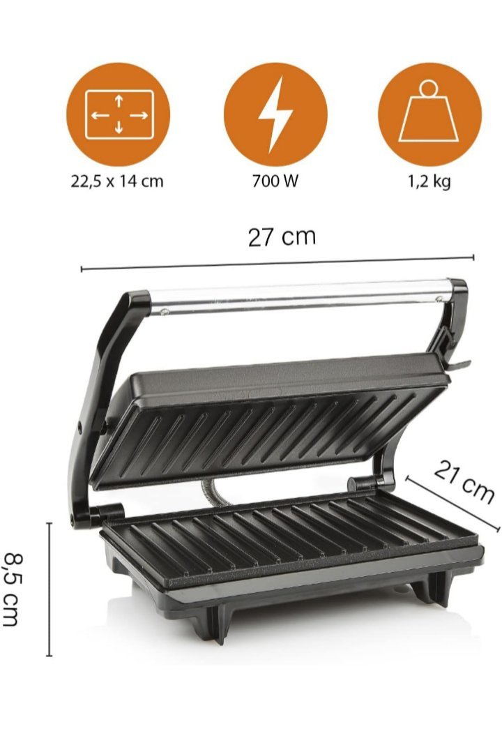 La parrilla de contacto alcanza rápidamente la temperatura deseada con una potencia de 700 W