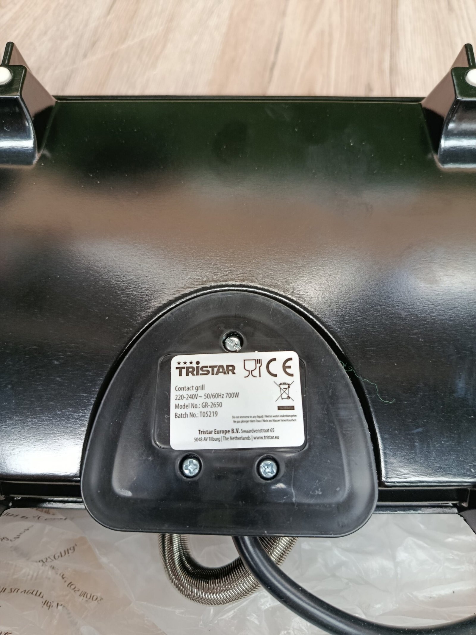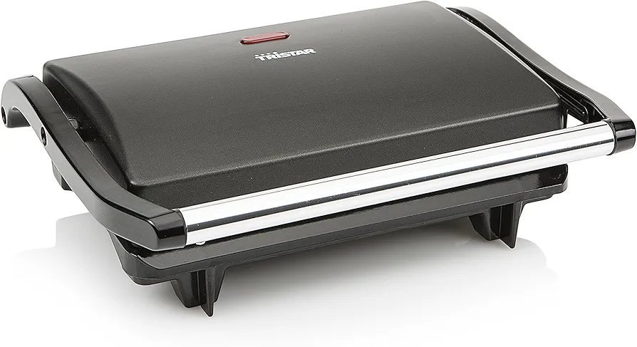 Tristar GR-2650 Parrilla eléctrica con superficie de cocinado de 22.5 x 14 cm, revestimiento antiadherente, tapa flotante, libre de BPA y PFOA, almacenamiento para el cable, 700 W, Color Negro