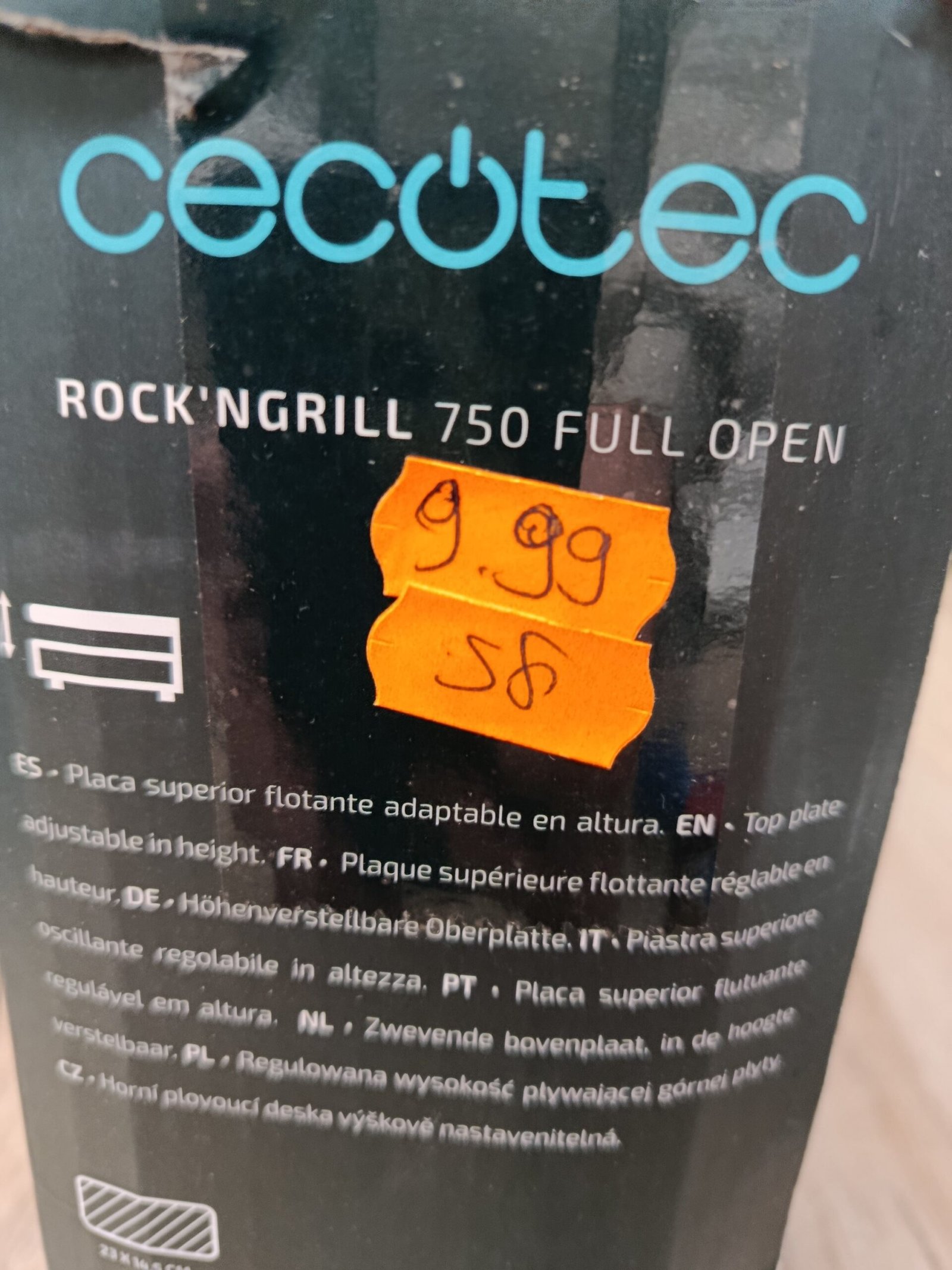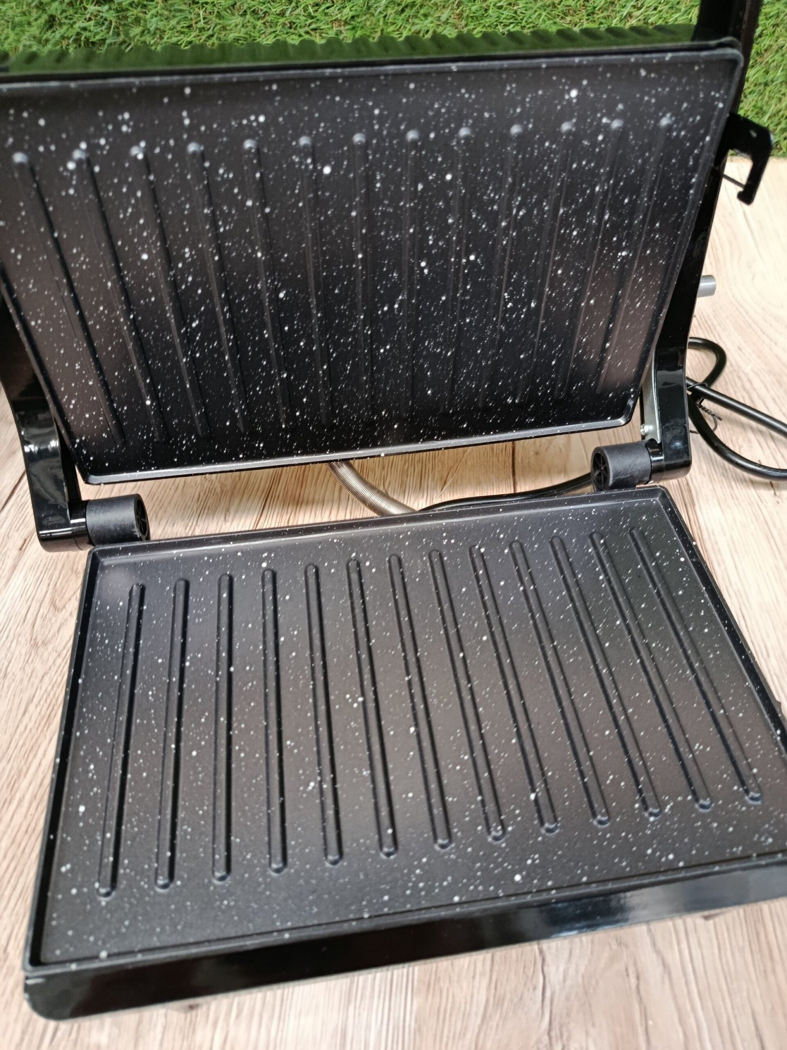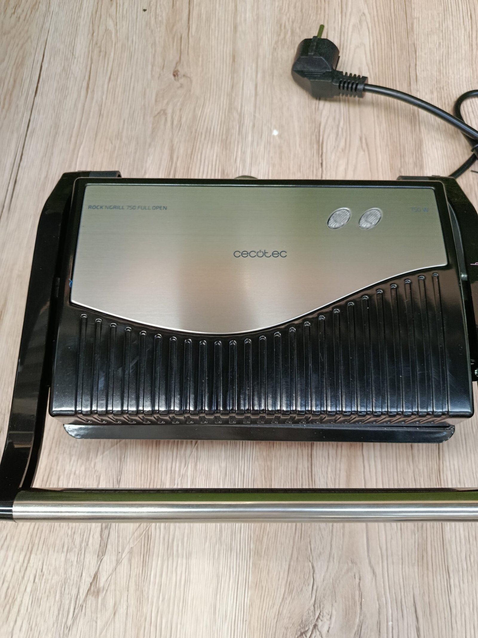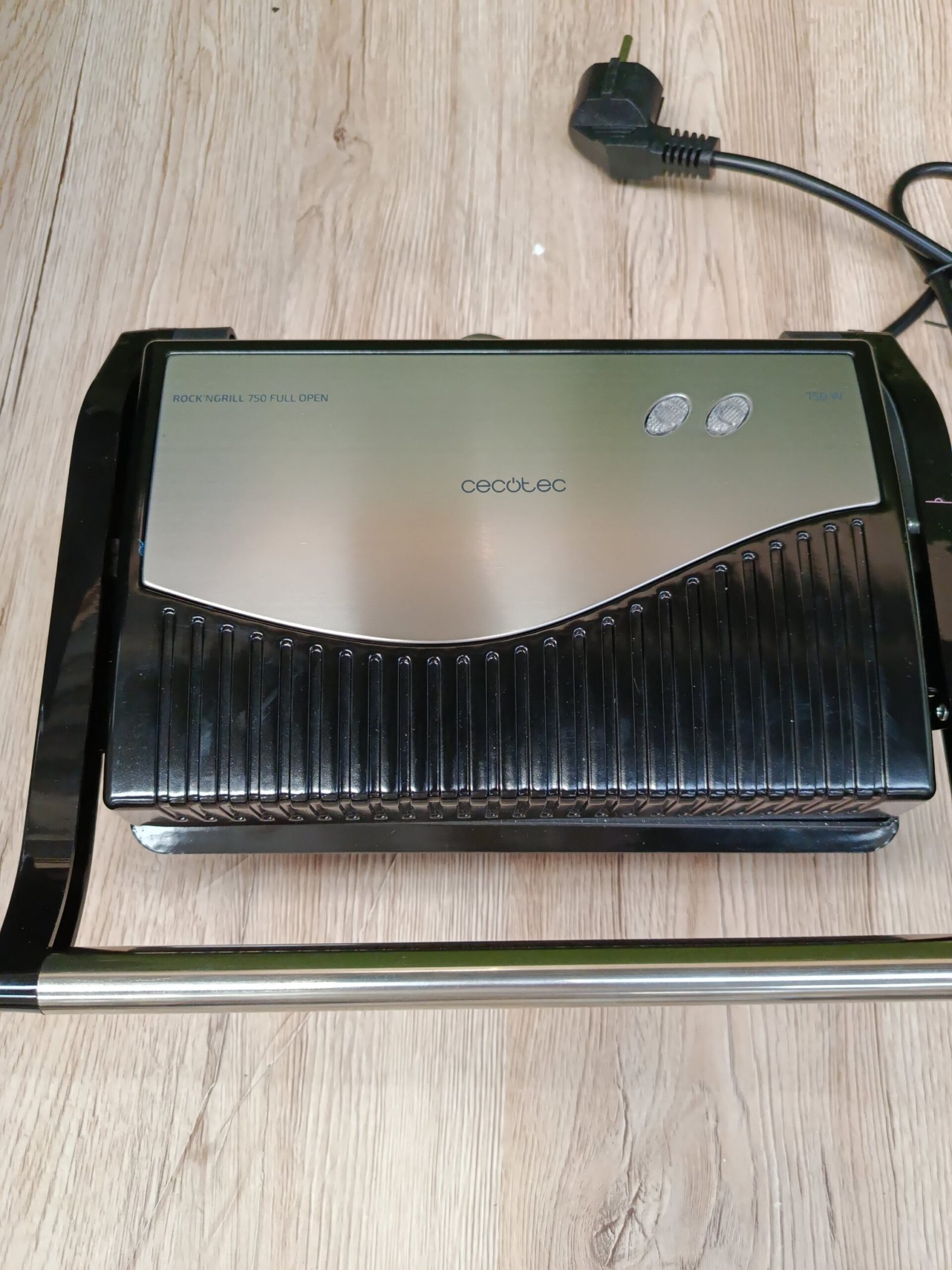 Cecotec Parrilla Eléctrica Rock’nGrill 750 Full Open. 750 W, Plancha Sandwichera, Revestimiento de Piedra RockStone, Apertura de 180º, Superficie 23×14,5, Pinza de cierre y Hueco recogecables
