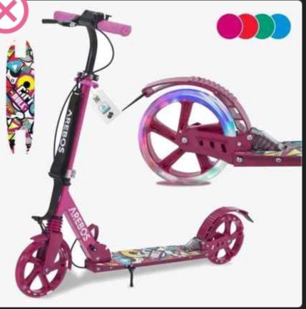 Antes, los patinetes eran sólo para niños. Los tiempos han cambiado y hoy en día muchos adolescentes y adultos también montan en patinete.Un práctico patinete urbano que garantiza una diversión activa y entretenida al aire libre. Su diseño ligero y robusto facilita la conducción y, gracias a su sistema de plegado compacto, podrá llevarse el patinete a cualquier viaje de vacaciones. Este patinete está equipado con neumáticos LED lo suficientemente anchos como para superar sin problemas las irregularidades de las calles adoquinadas, las carreteras asfaltadas y los bordillos.