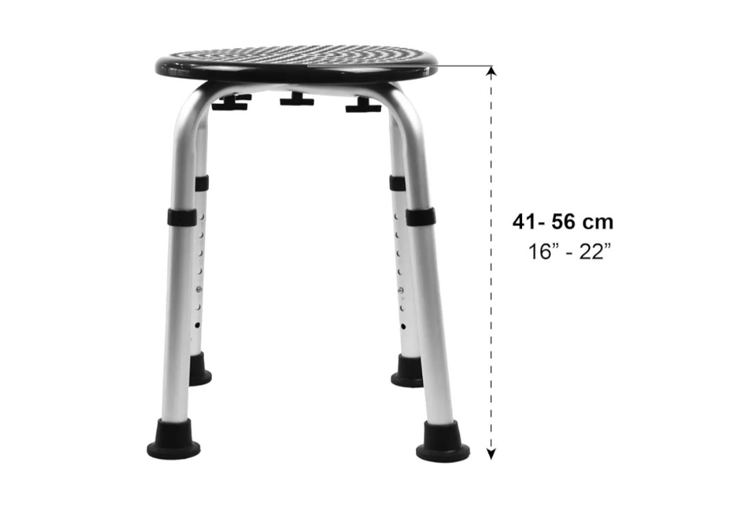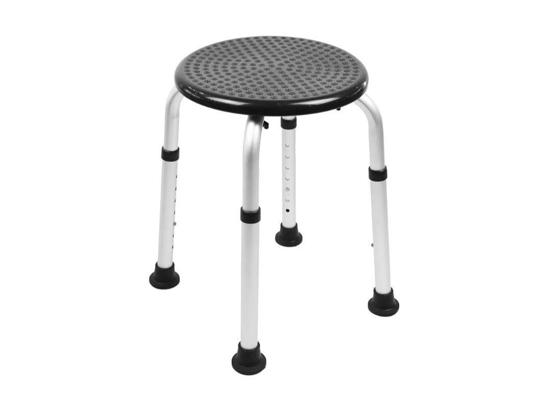 PEPE Mobility Taburete para Ducha Antideslizante, Banqueta Baño, Altura Regulable, Montaje sin Herramientas, Redondo, Negro