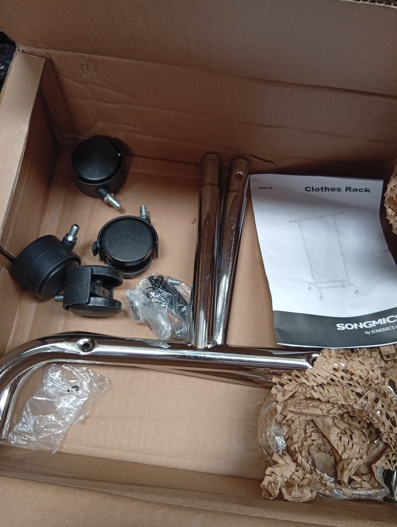 SONGMICS Perchero Extensible para Colgar Ropa, Almacenamiento de Ropa con Ruedas, 45 kg de Carga máxima Total, 40 x 83-120 x 156 cm, Color Plateado HSR134E01
