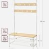 VASAGLE Perchero, Mueble Recibidor Grande con Banco, 9 Ganchos, Zapatero, Perchero, 41,5 x 100 x 182 cm, para Pasillo Salón Dormitorio, Roble y Blanco HSR047W09