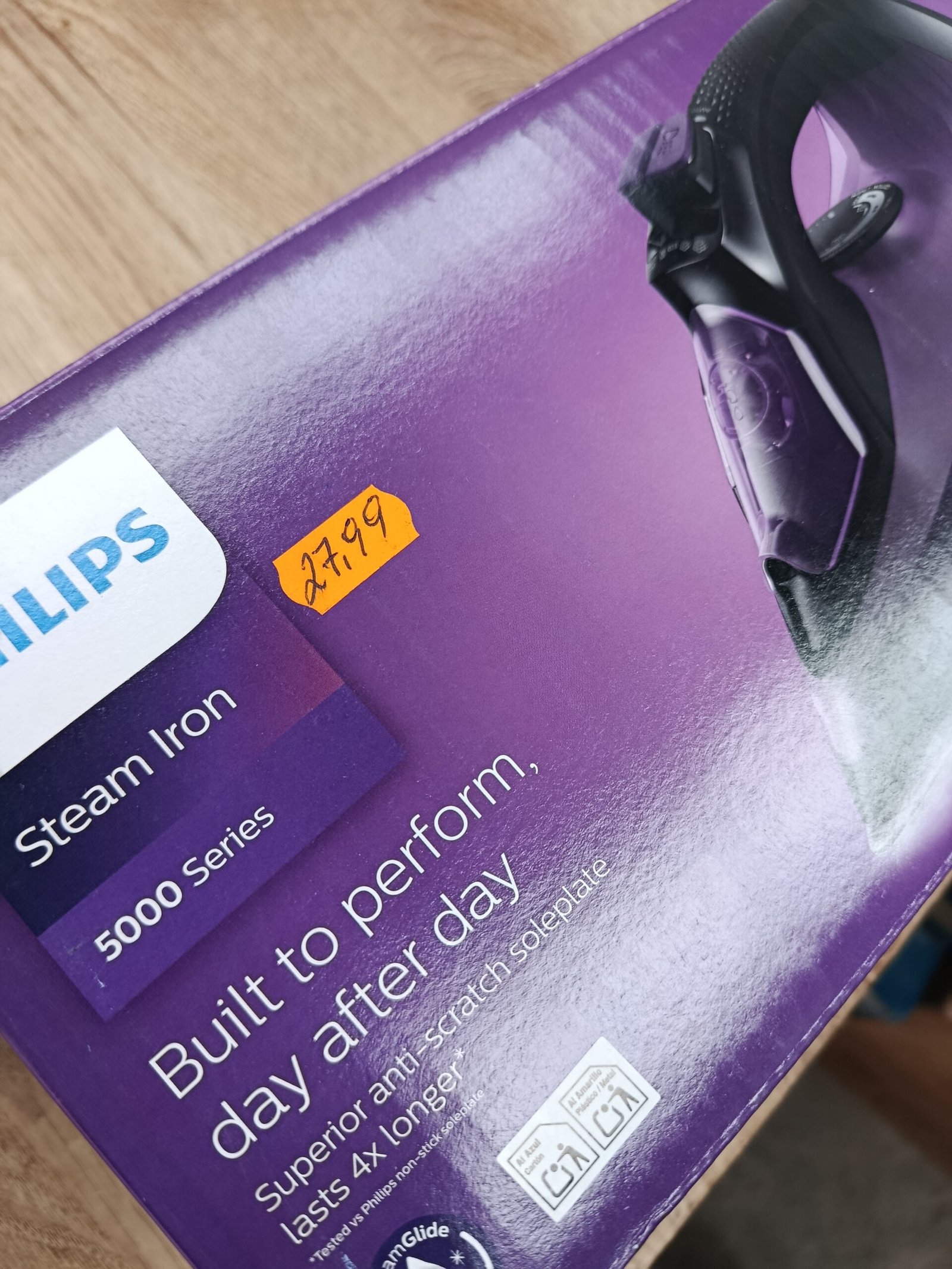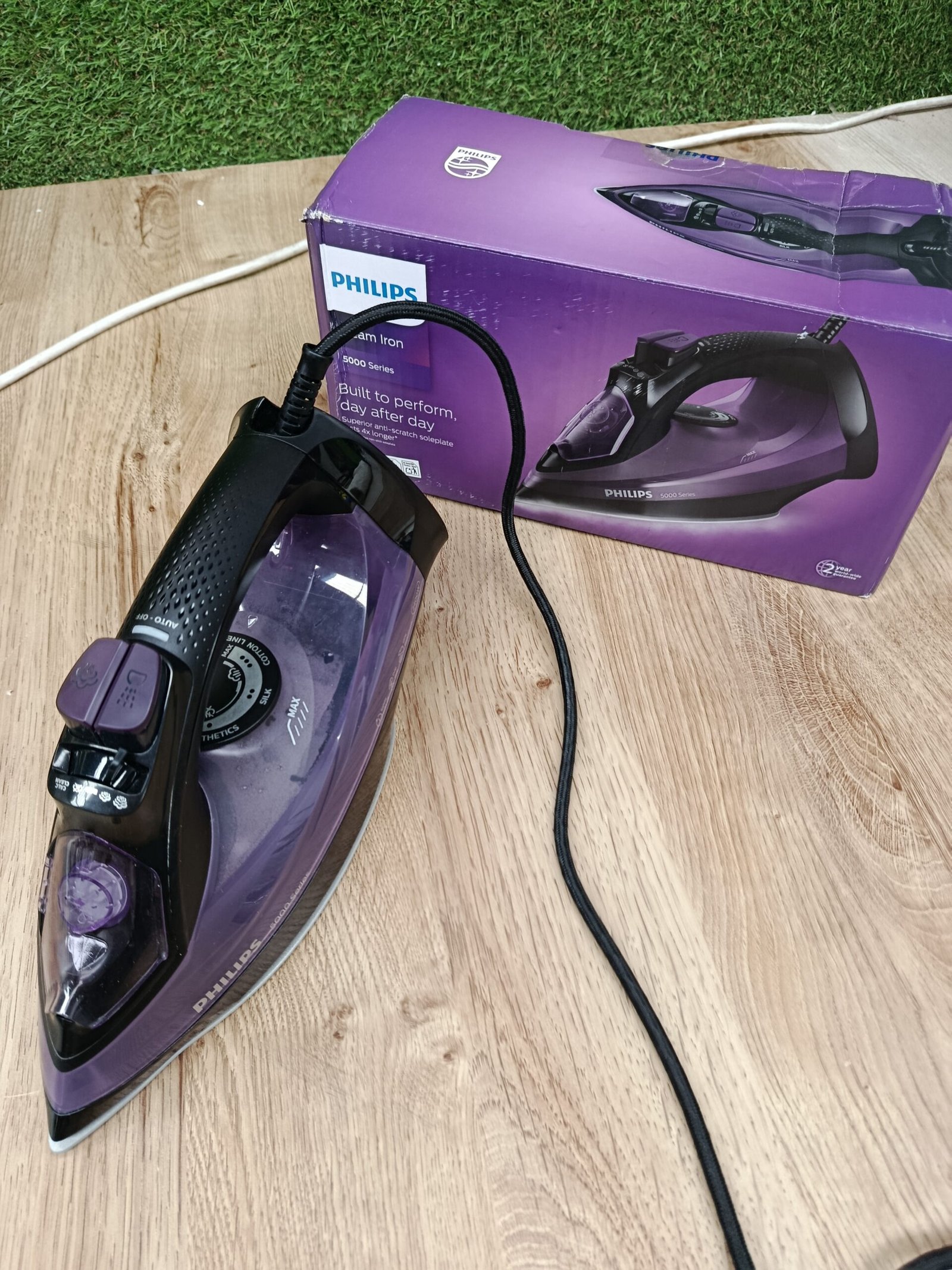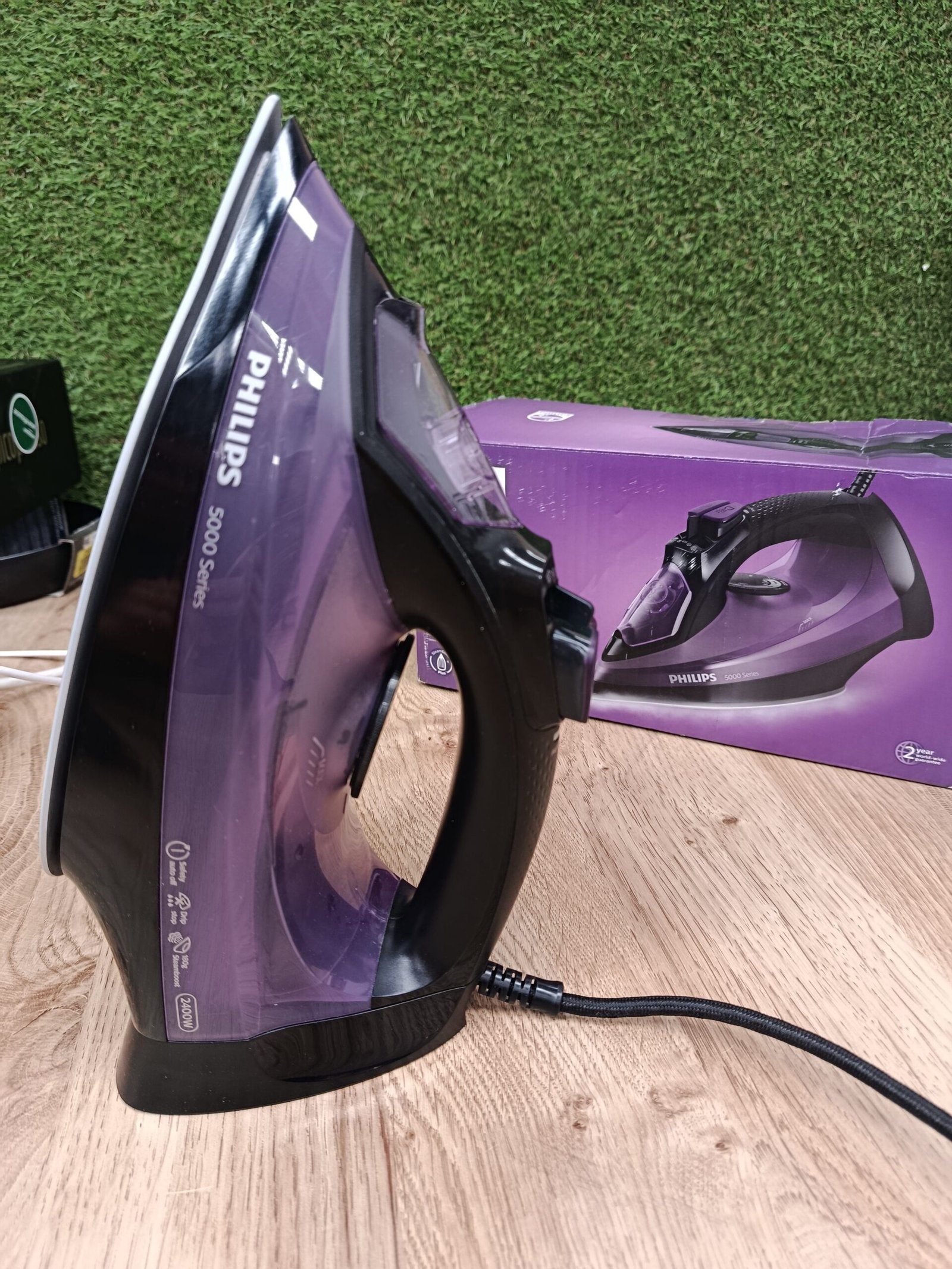 Philips Serie 5000 Plancha de Vapor, 2400W de Potencia, 45g/min, Golpe de Vapor 180g, Vapor Vertical, Suela SteamGlide Plus, Negro/Púrpura (DST5030/80)
