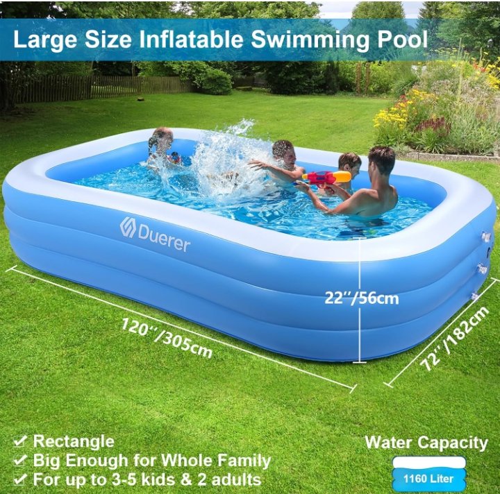 Duerer Piscinas Inflables, Piscinas Inflables, Piscina Familiar para Jardín, Fiesta Acuática de Verano, Exterior, Jardín, Nadar Adultos . 118x72x22