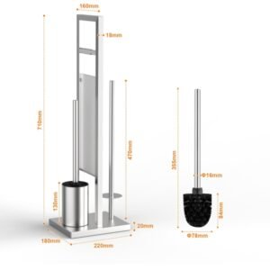 Ibergrif M34153A Portarrollos Papel Higiénico de Pie con Escobilla de Inodoro, Soporte para Papel Higiénico de Acero Inoxidable sin Necesidad de Taladrar, Cepillado