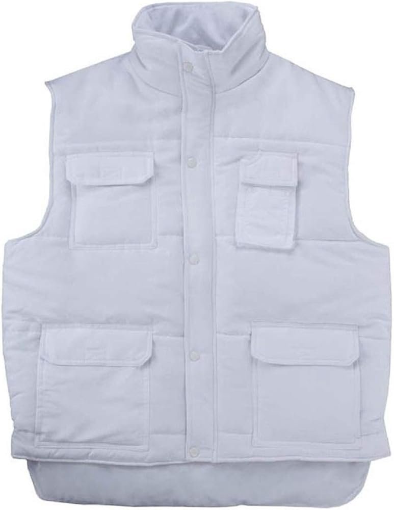 Chaleco acolchado multibolsillos con cierre central con cremallera, oculto por alfombra. Protector de pie central con botones automáticos, cinturón elástico lateral y resistente al viento en sisa. Tiene siete bolsillos.