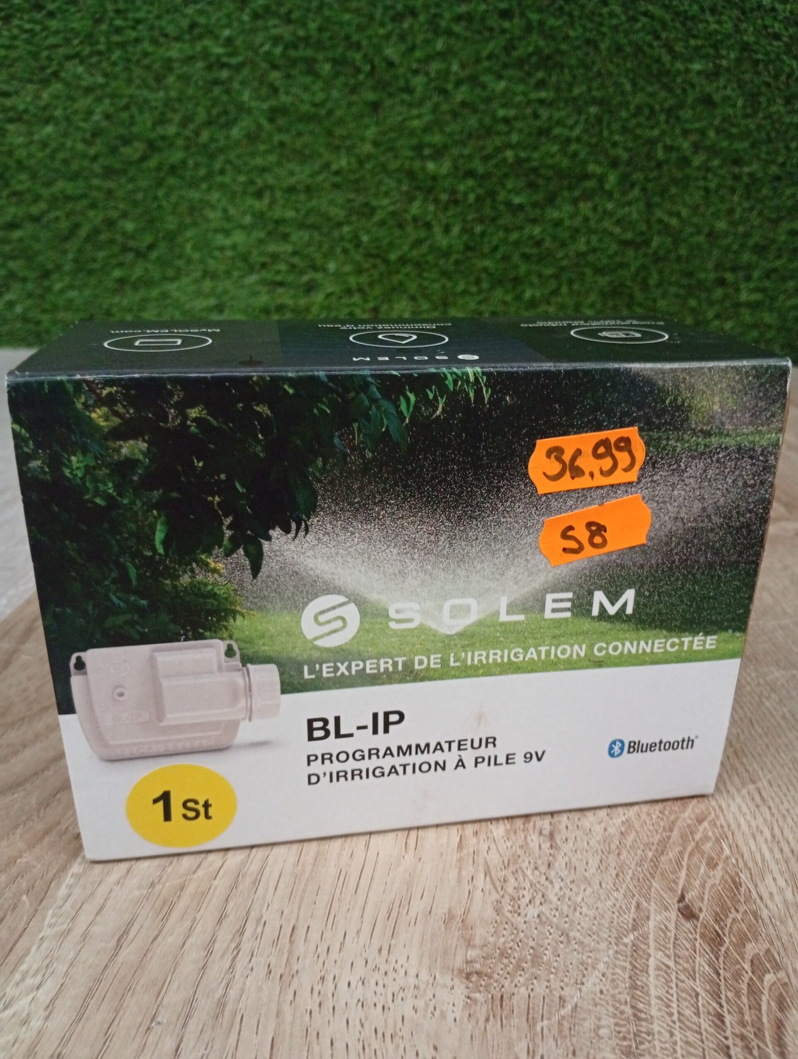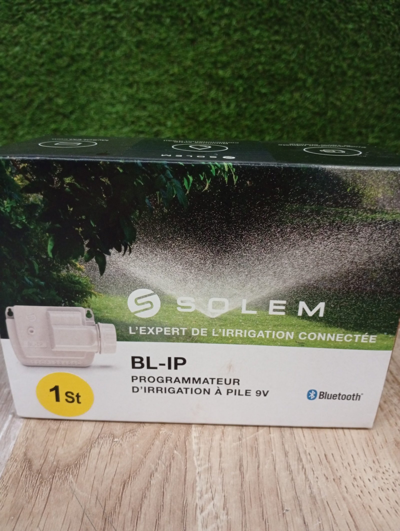 Programador de riego a pilas 9V modelo BL IP1, con conexión Bluetooth de alcance hasta 10 metros, resistente al agua para 1 estación, color blanco, 14 x 9 x 5,5 centímetros (referencia: Solem BL-IP1)
