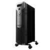 ReadyWarm 7000 Space Black Radiador de aceite de 7 módulos y 1500 W con 3 niveles de potencia, cobertura de 15 m², recogecables, control sencillo, asa, ruedas y doble sistema de seguridad.