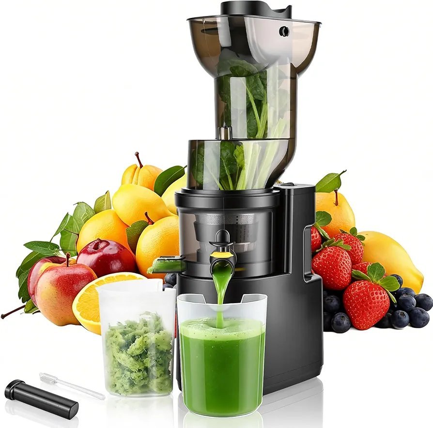 500W Extractor de Zumos y Verduras Juicer Machine,Slow Juicer con Entrada 98 mm,98% de rendimiento de zumo,Fácil Montaje y Limpieza,Sin BPA,Negro