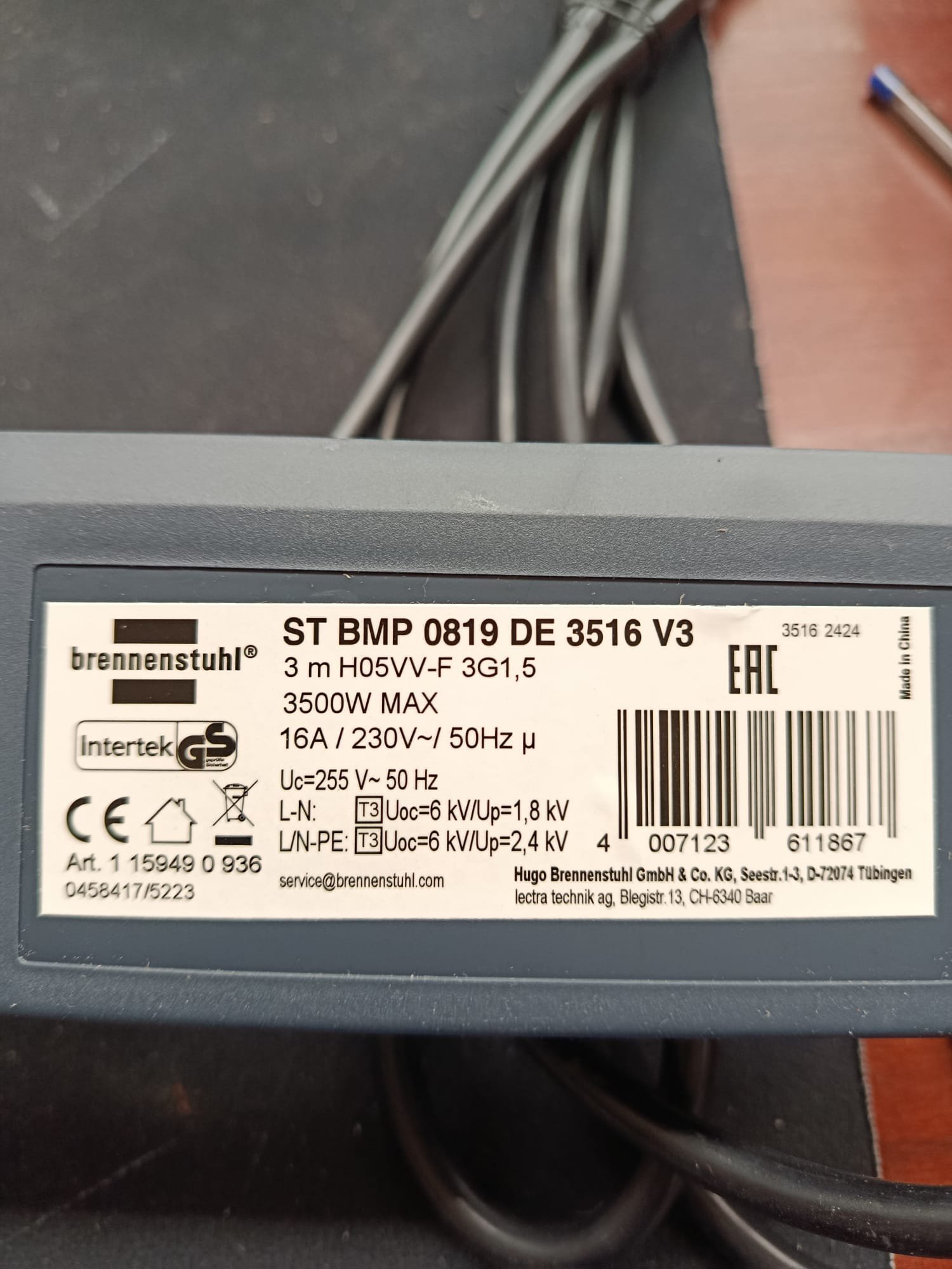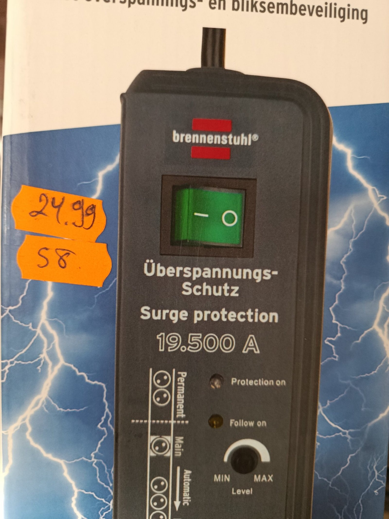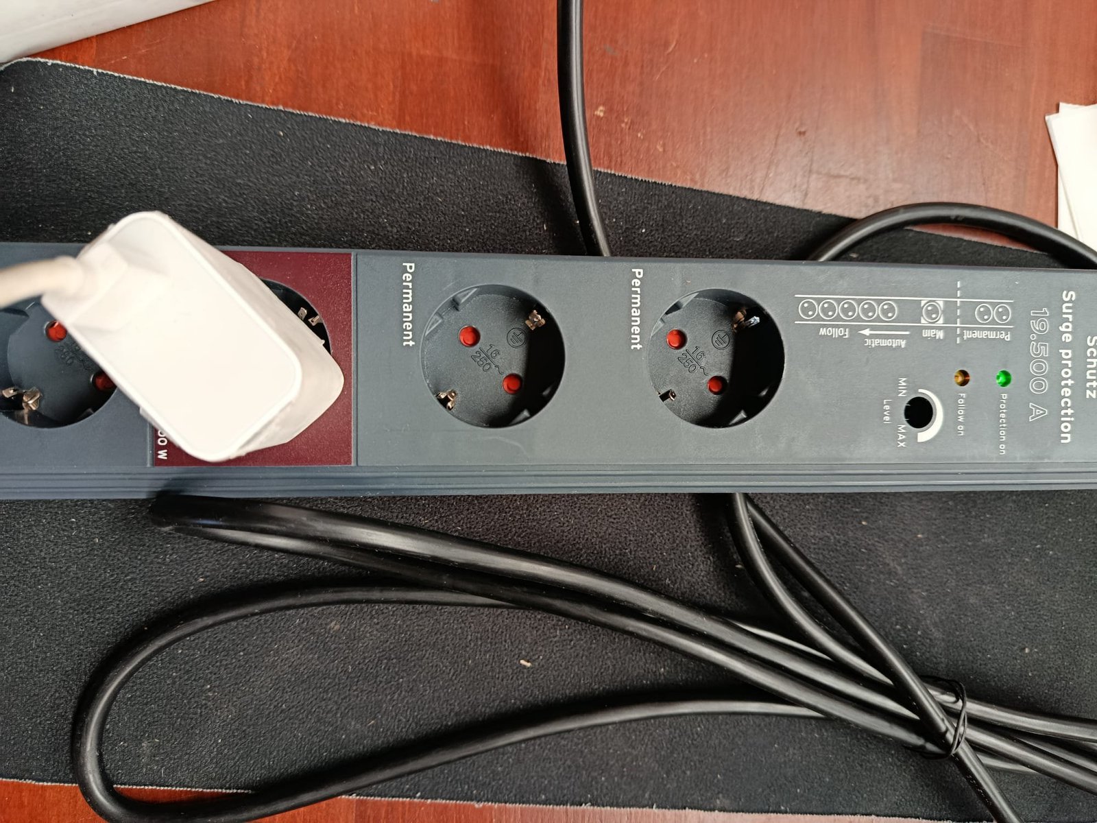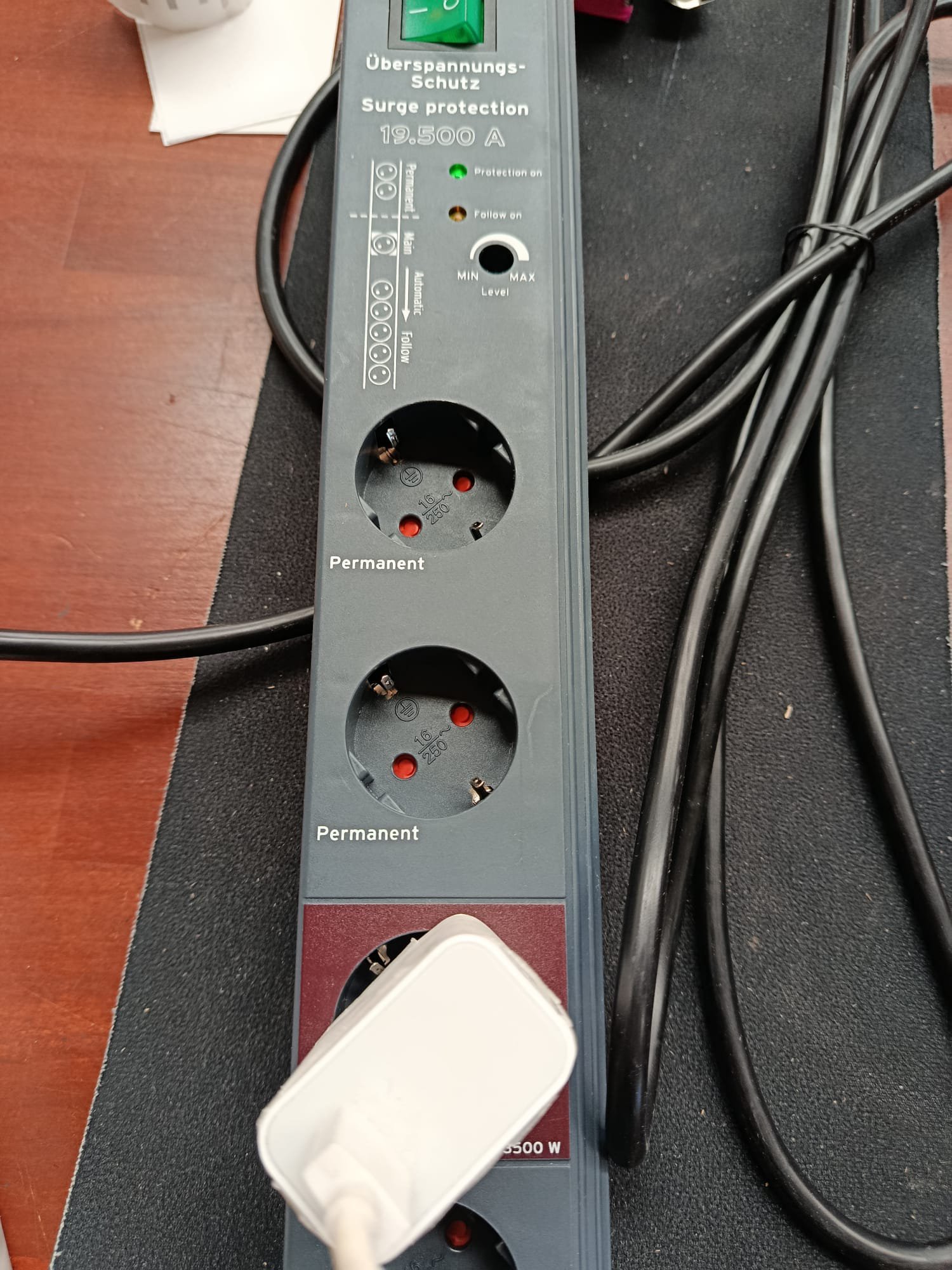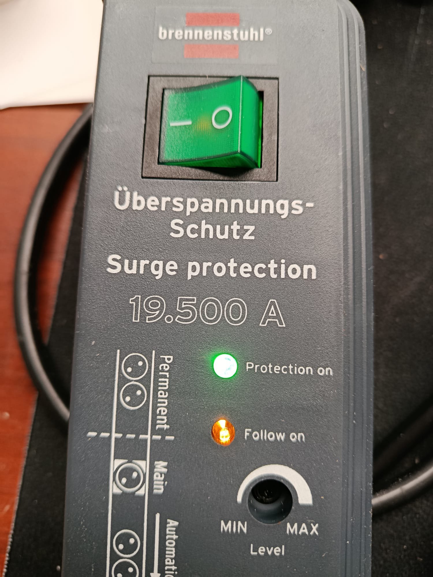 Regleta enchufes con interruptor de seguridad iluminado para encendido/apagado (bipolar), luz de control para la protección de sobretensión activa y las enchufes Follow
