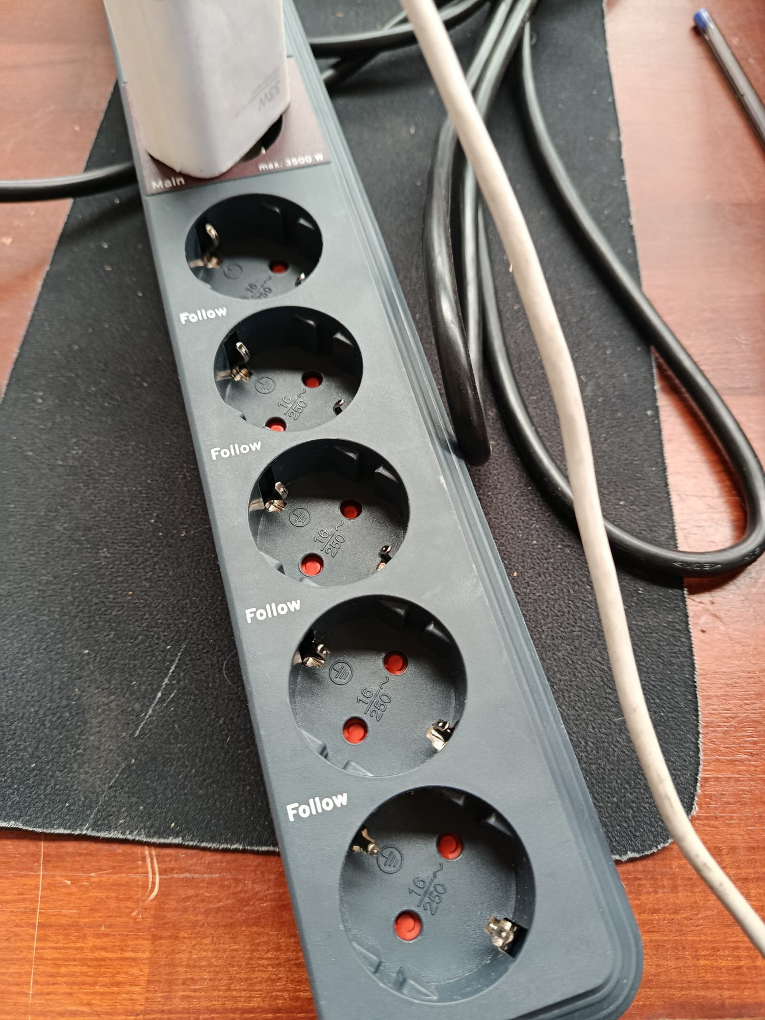 La tecnología Master-Slave o Main-Follow es el sistema de conmutación automática de regletas de enchufes (1 Main + 5 Follow)