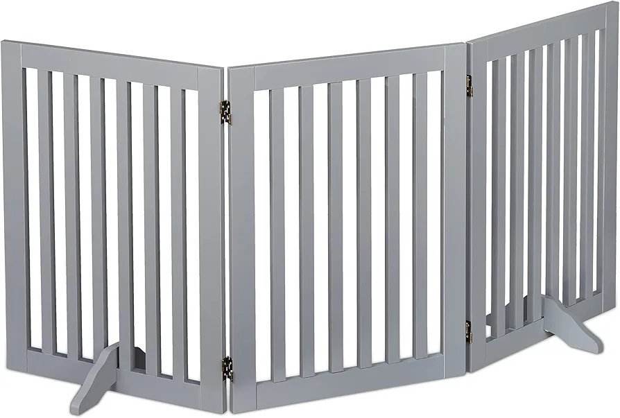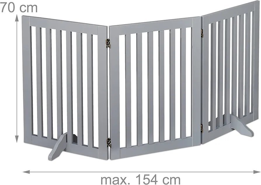Relaxdays Barrera Seguridad Perros, Valla Protectora Plegable, 70 x 154 cm, Cerca para Mascotas, con Patas, Gris