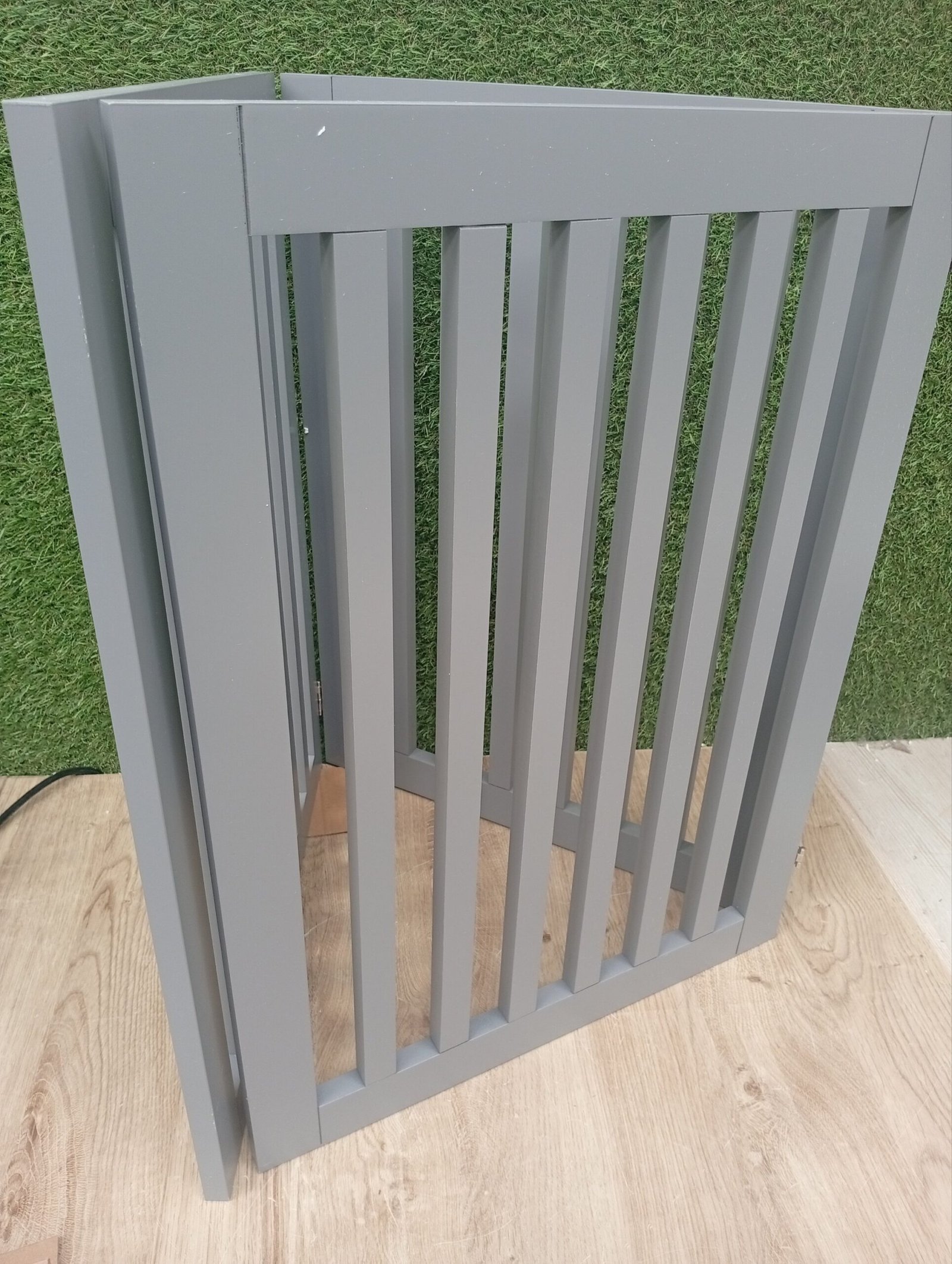 Seguridad: barrera gris para proteger a los perros en el hogar. Medidas de 70 cm de altura aprox.