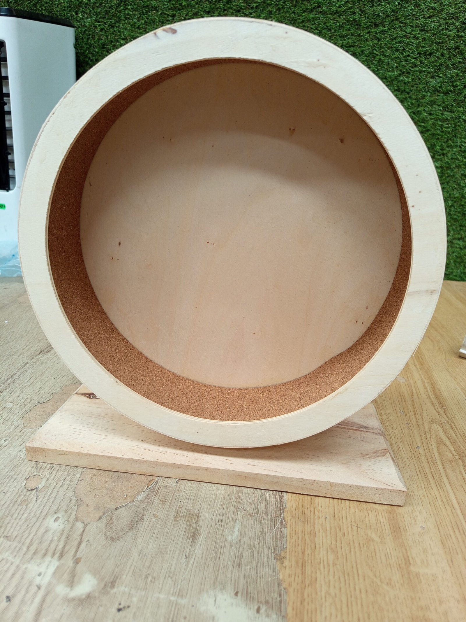 Rueda para roedores de madera no tratada, silenciosa y muy suave al girar gracias a la superficie de rodación de corcho. Se encuentra totalmente cerrada, es estable y segura.