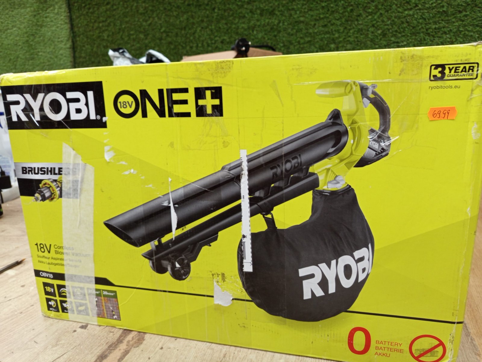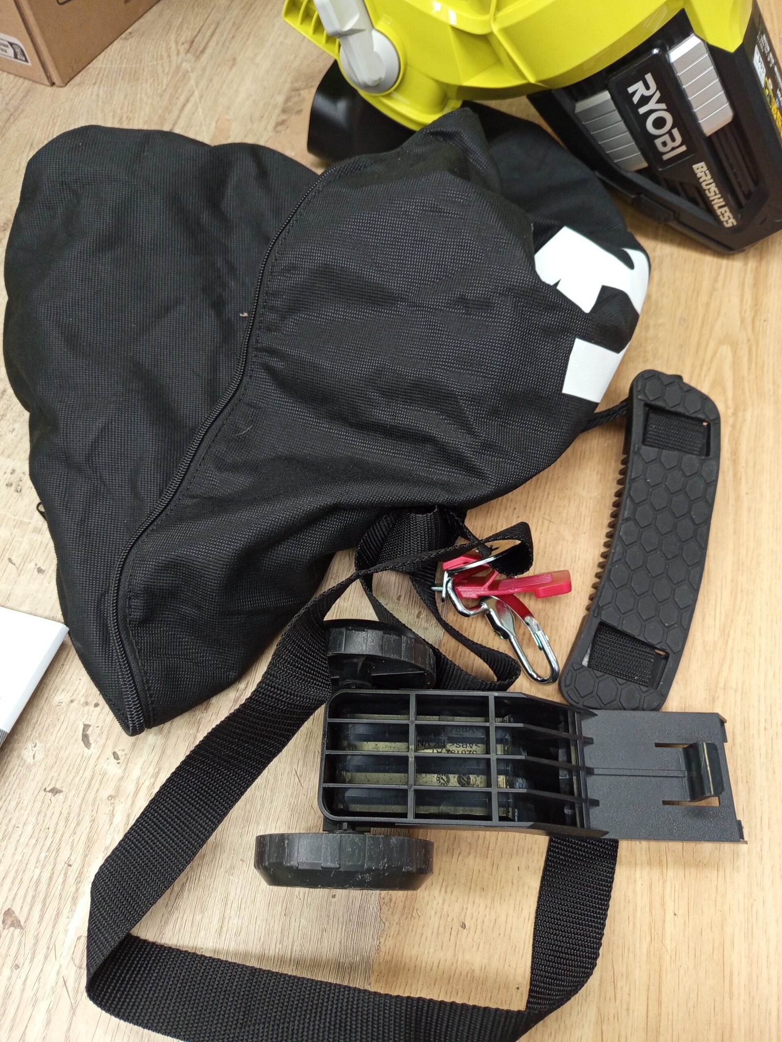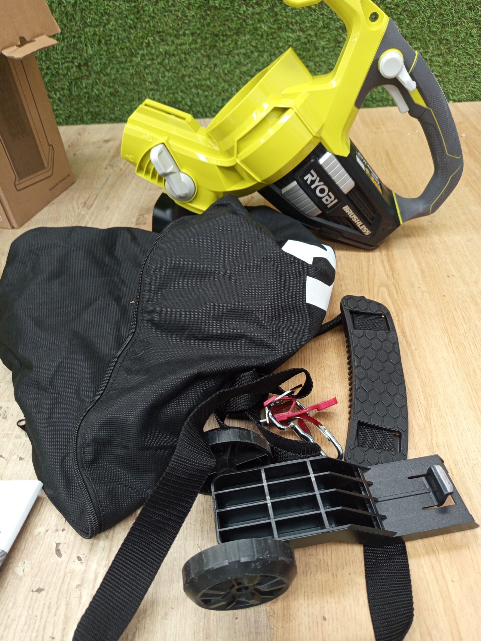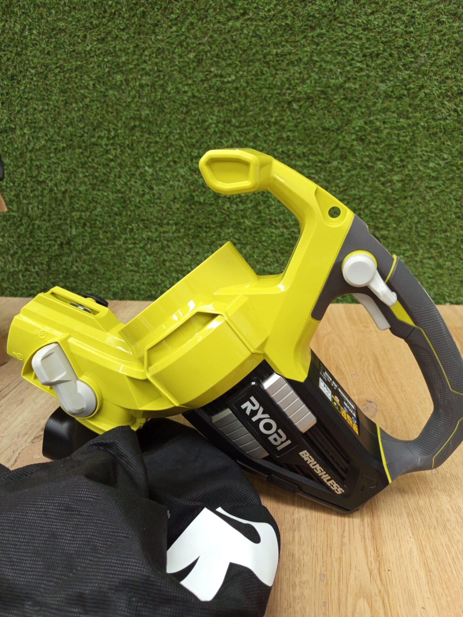 RYOBI – Soplador Aspirador/Triturador Eléctrico Sin Cable y Batería 18V One+ Brushless – Limpieza Hojas, Pasillos Exteriores, Terrazas, Céspedes y Pequeños Jardines – 1 Bolsa Impermeable 35L – OBV18