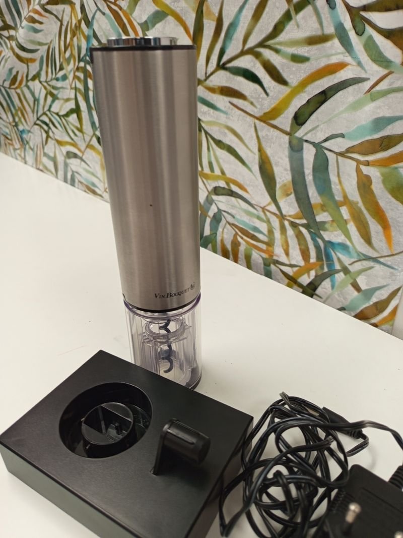 Vendo sacacorchos eléctrico Vin Bouquet, en buen estado. Incluye base de carga y cable.