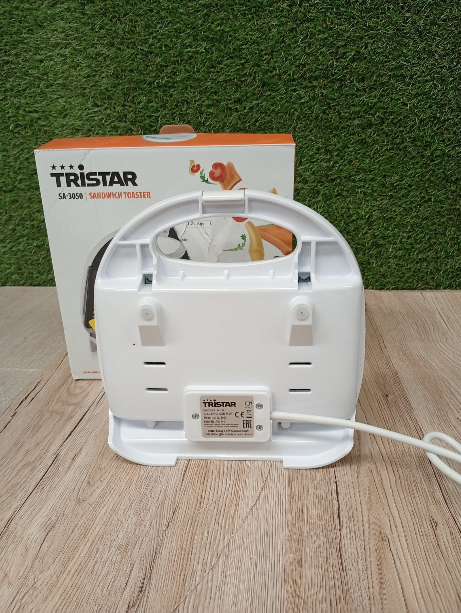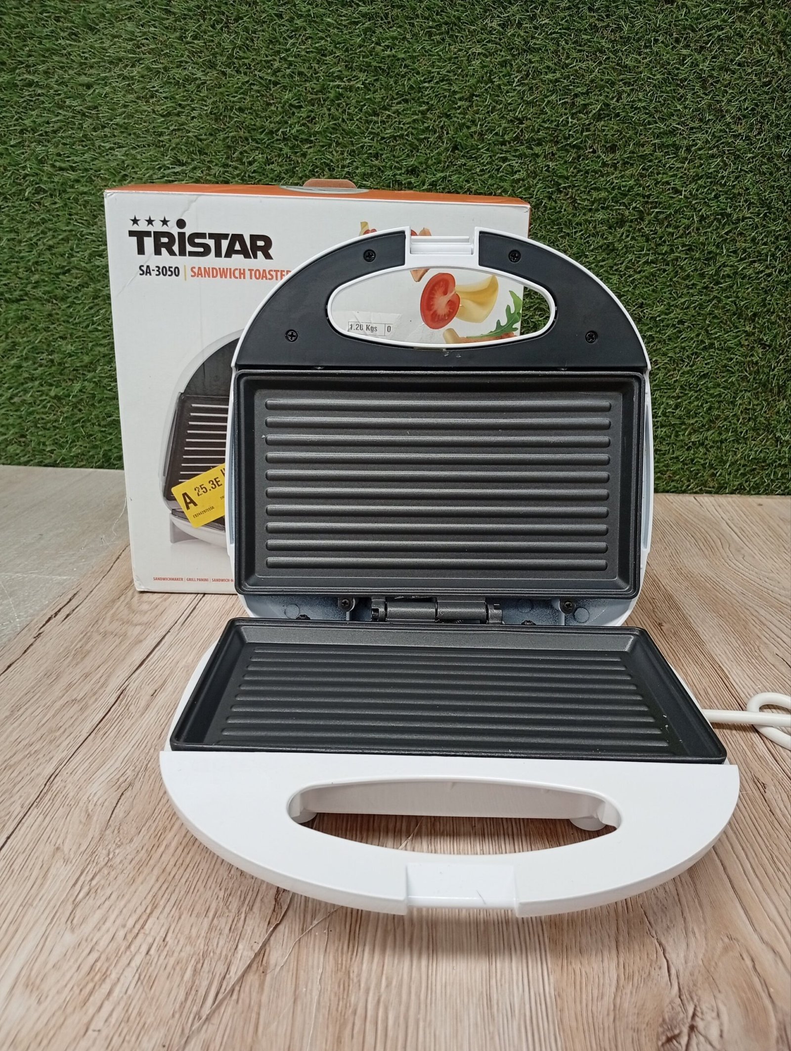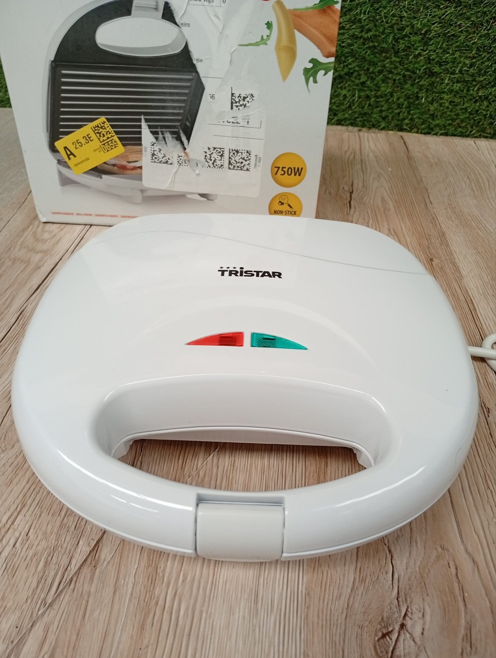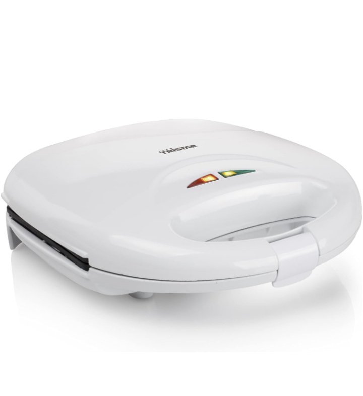 Tristar SA-3050 Sandwichera grill con placas de parrilla, tamaño compacto con compartimento para cable, potencia de 750 W, recubrimiento antiadherente, color Blanco