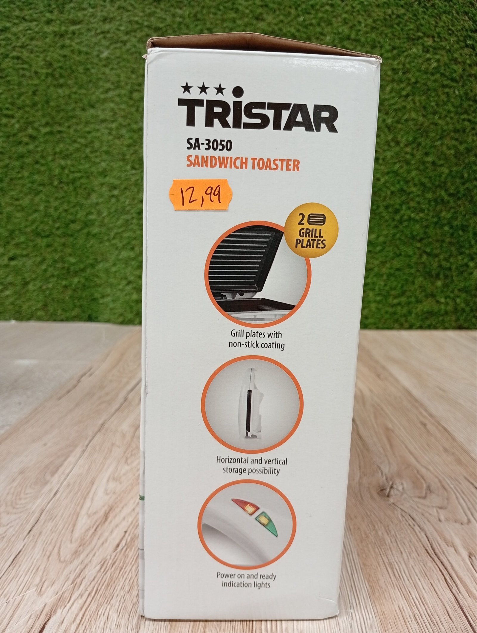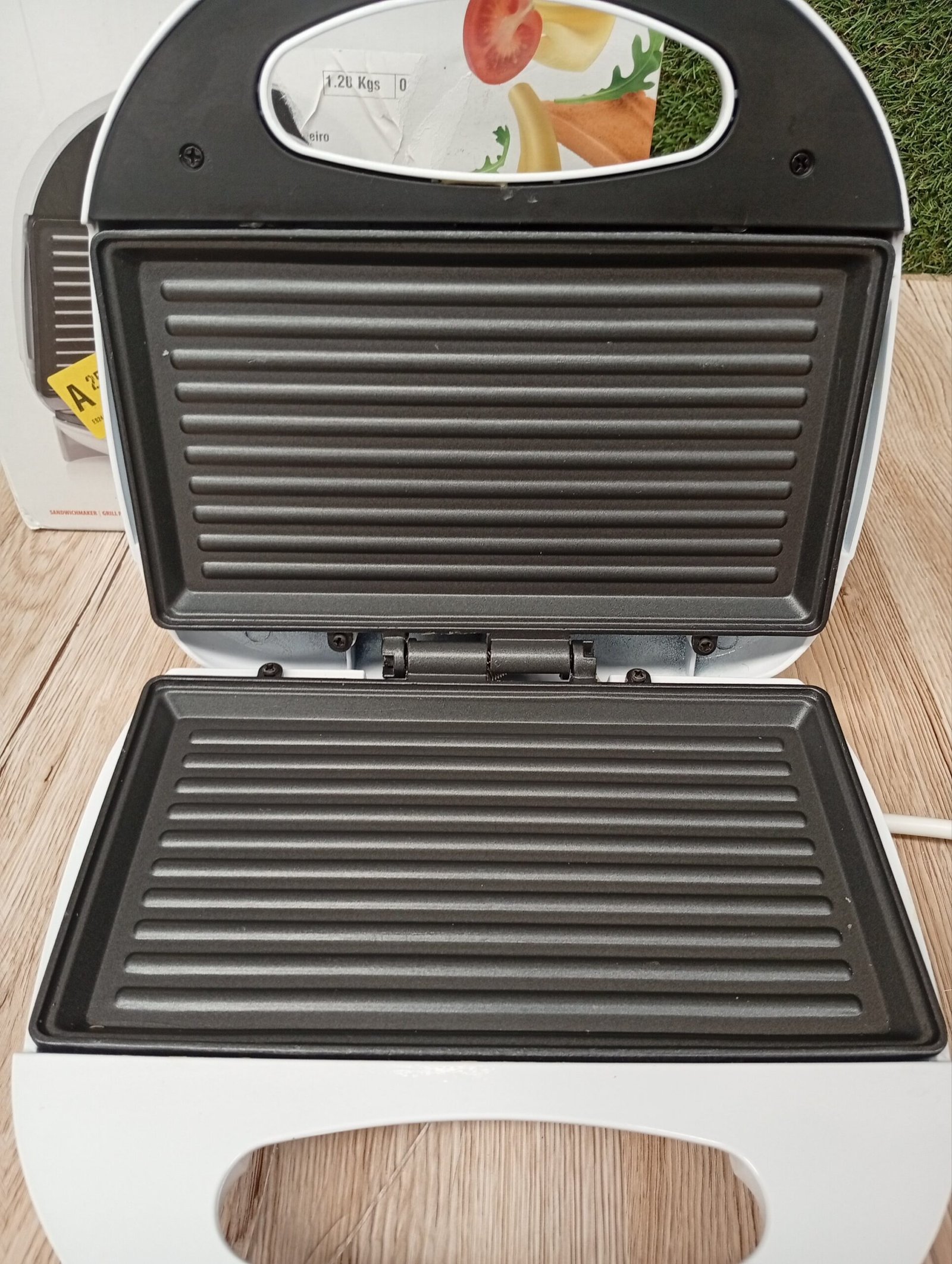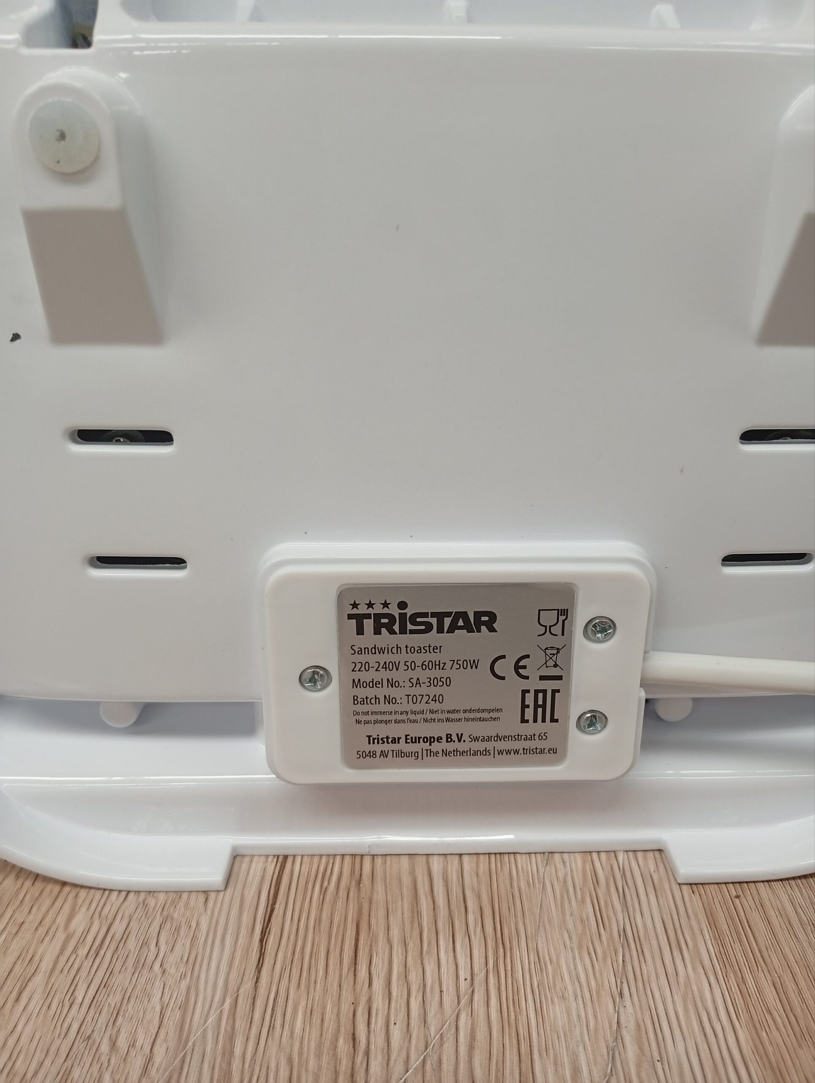 Tristar SA-3050 Sandwichera grill con placas de parrilla, tamaño compacto con compartimento para cable, potencia de 750 W, recubrimiento antiadherente, color Blanco