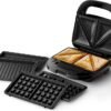 Sandwichera Philips Serie 5000-3 juegos de platos para paninis, sándwiches y gofres, placas antiadherentes para parrilla, cortar y sellar, 750 W de potencia, negro (HD2350/80)