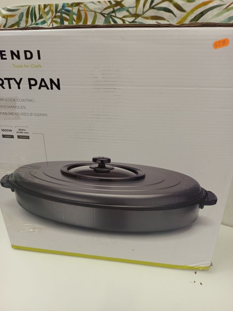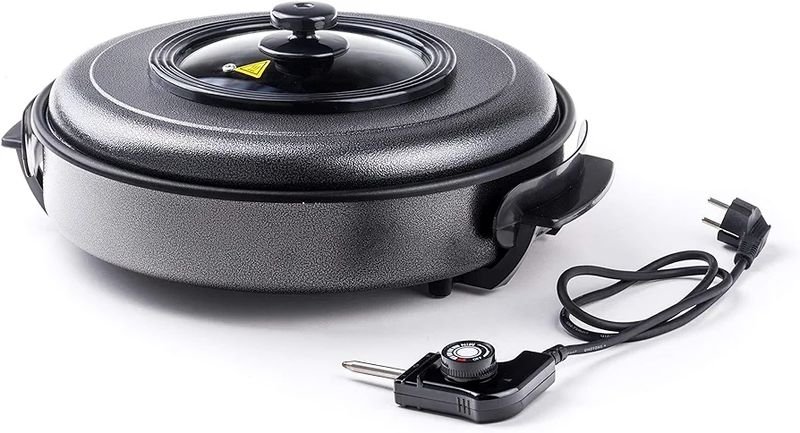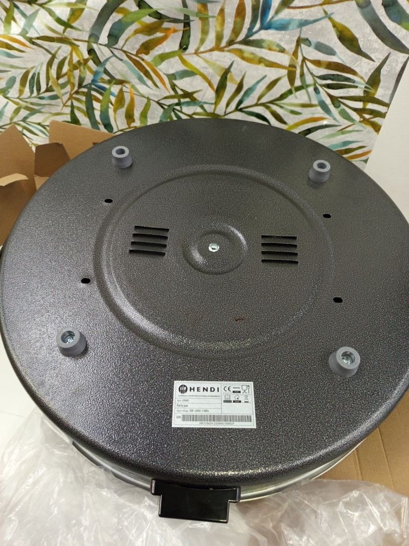 HENDI Sartén eléctrica multiusos, paellera cazuela olla plancha, de fiestas, revestimiento antiadherente, termostato, con tapa, interior: ø40cm profundidad: 5cm, 230V, 1600W, ø620x(H)190mm, aluminio