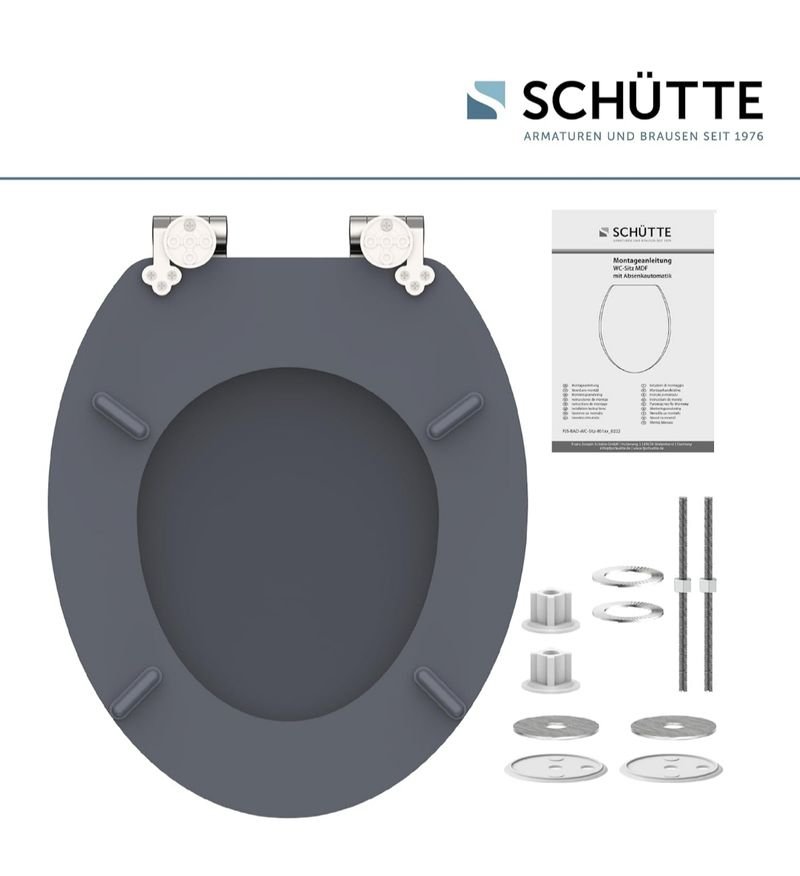 SCHÜTTE Tapa WC Madera Universal | Asiento de inodoro con dispositivo de descenso automático | Tapa vater WC Universal extraíble de irrompible | Tapa y gafas de hasta 250kg | SUNSET