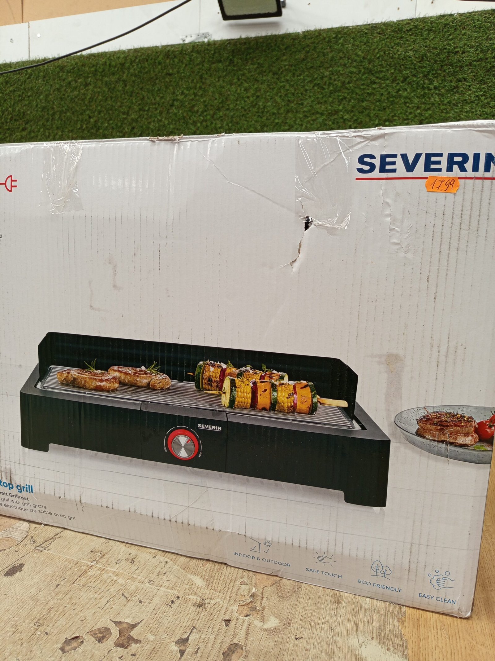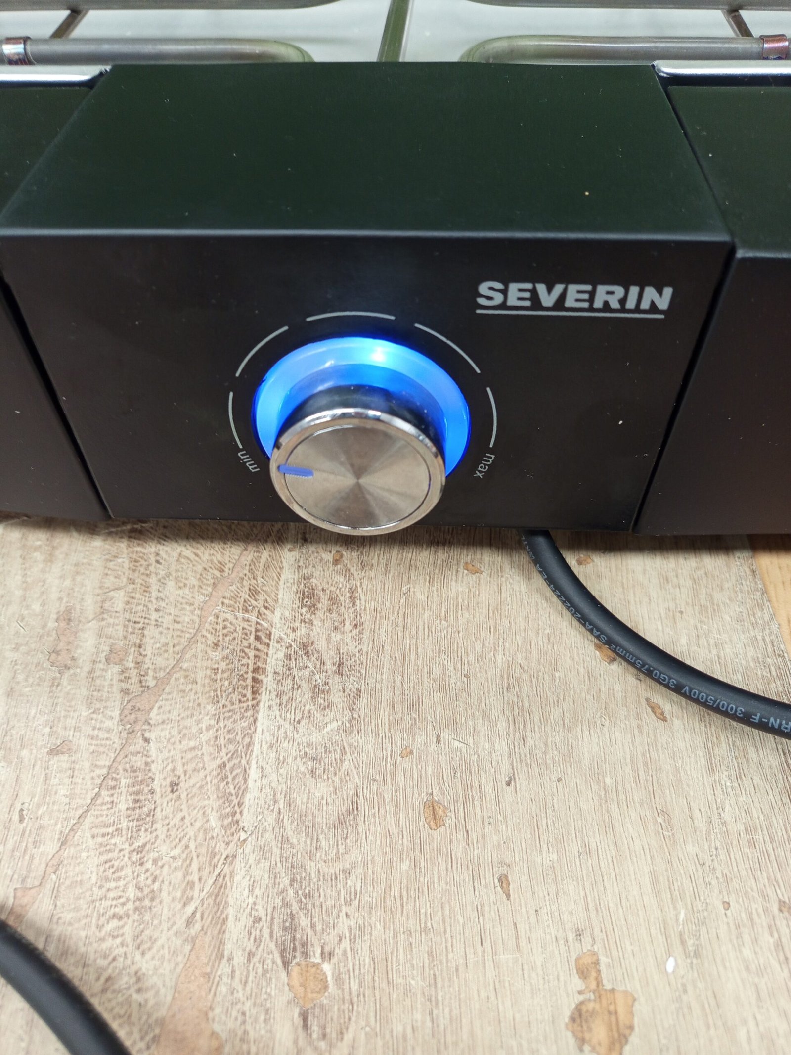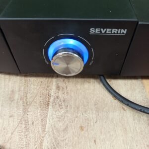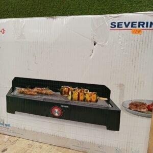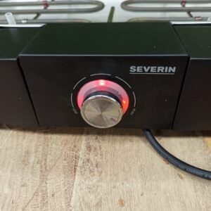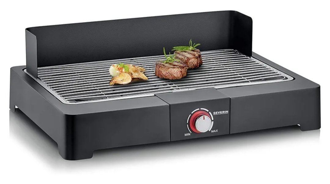 Severin Barbacoa de mesa con parrilla de acero inoxidable para interior y exterior, parrilla eléctrica con arranque rápido, mini barbacoa sin riesgo de quemaduras, negro