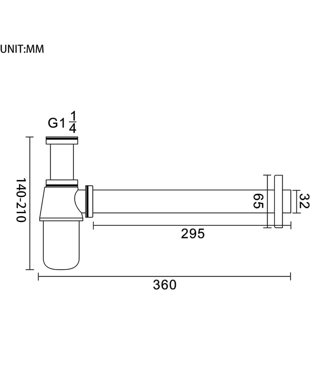 bergrif Sifón Universal para Fregadero 1-1/4 pulgadas x 32 mm, Sifón Antiolor, Regulable en Altura, Desagüe Metálico, Impermeable, Cromado, M20505