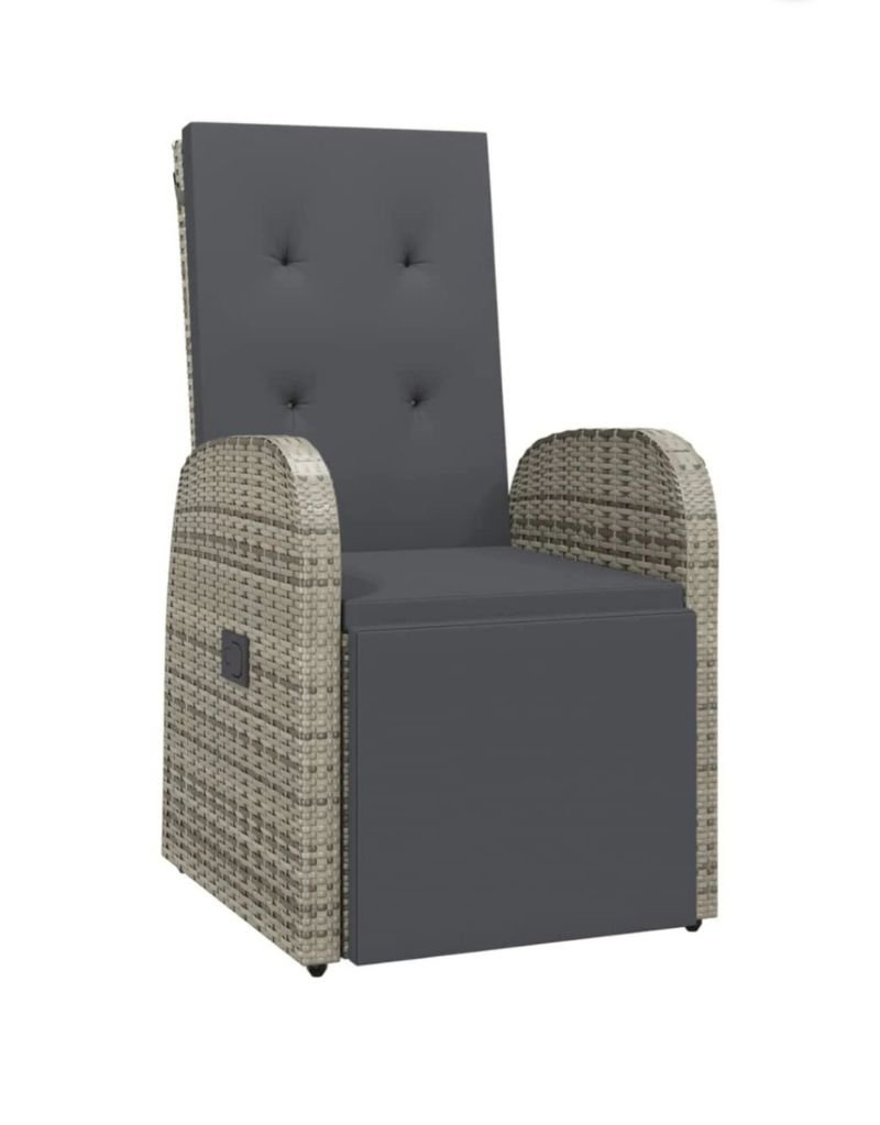 vidaXL Sillón reclinable de jardín con cojines ratán sintético gris