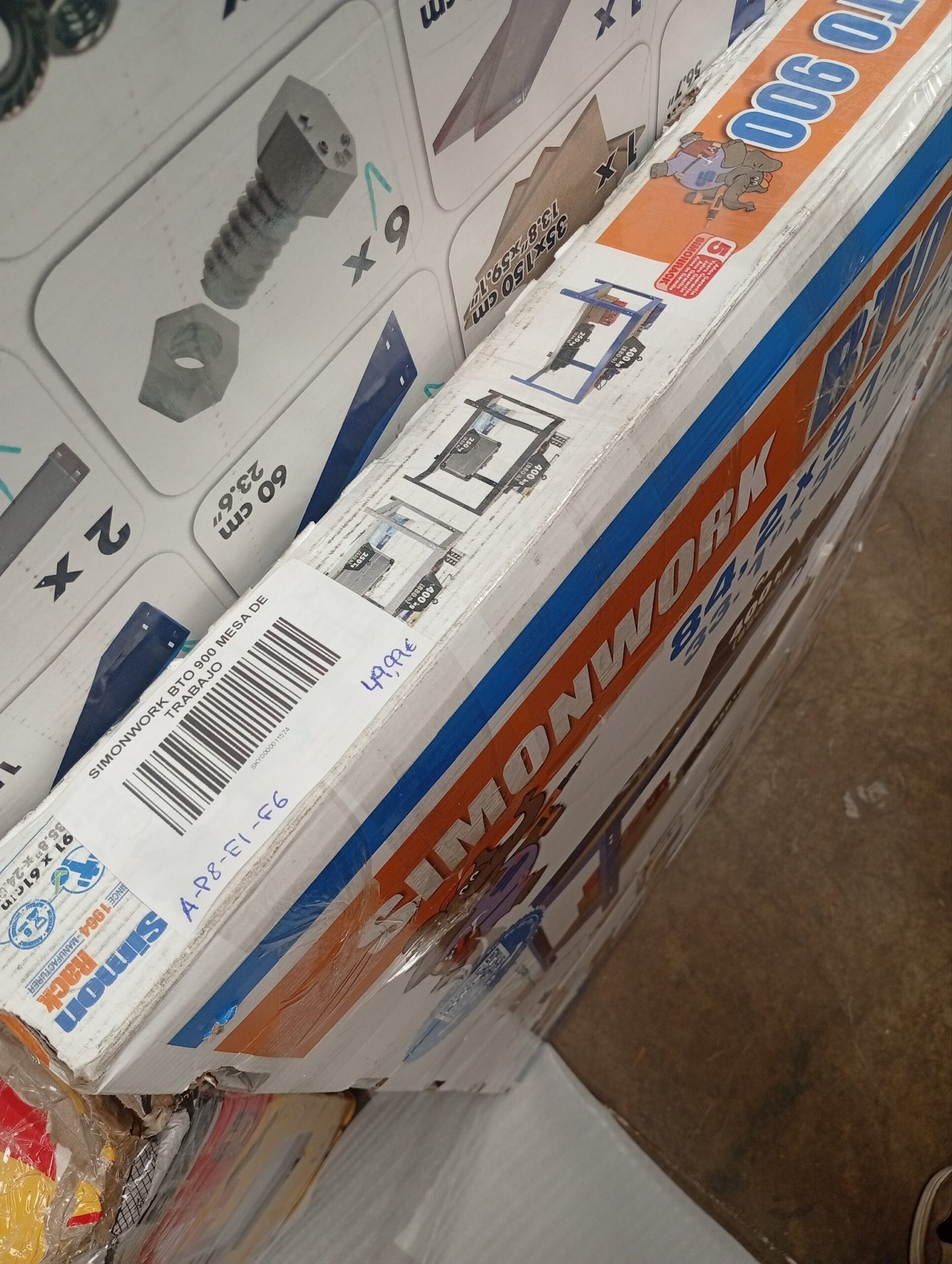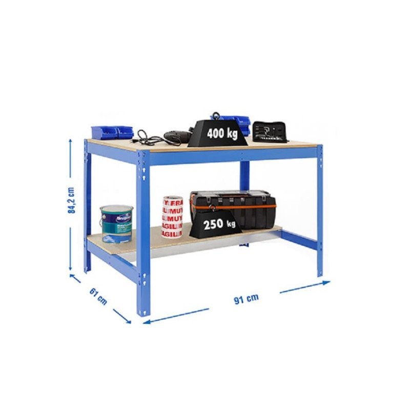 Simon Rack Mesa de Trabajo Taller, 400 kg Capacidad Carga, 842x910x610 mm, Azul/Madera – BT0