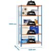 SimonRack Estanteria Metalica, 2000x1000x500 mm, 5 Baldas, 180 kg de Punto Flexión, Estantería Almacenaje, Sin tornillos, Azul/Naranja/Galva – Simonclick