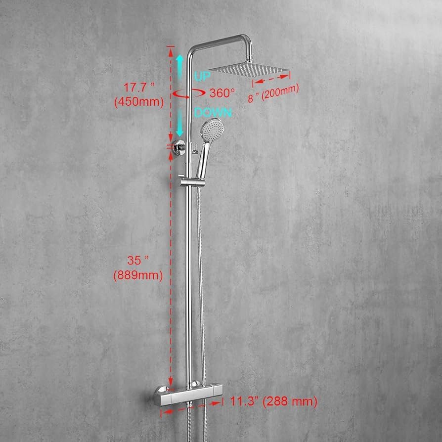 Ibergrif M21811 Sistema Columna Cuadrado de Ducha Termostática con Rociador, Alcachofa, Manguera, Barra Ajustable y Soporte, Cromo, Plata