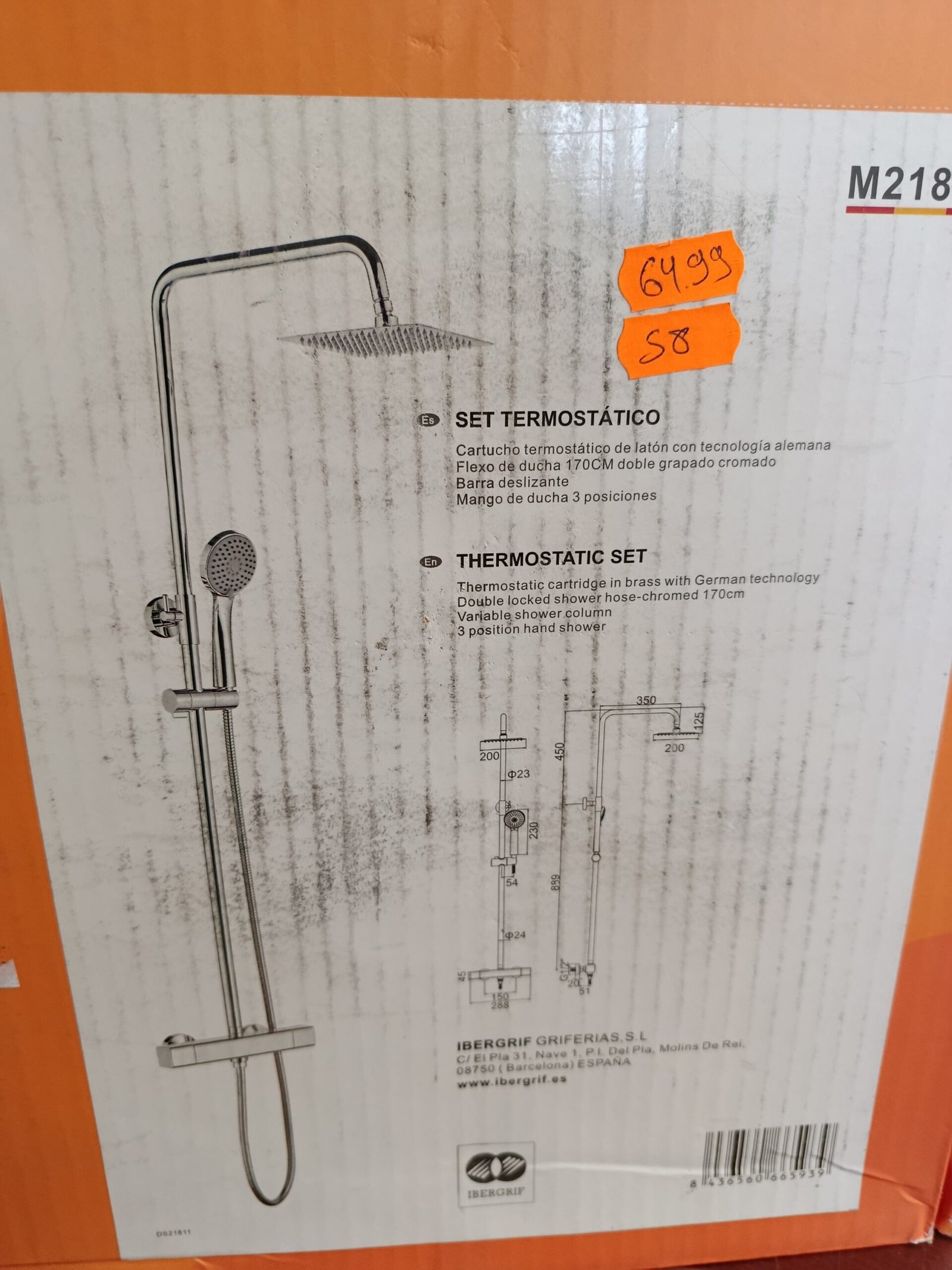 Sistema Columna Cuadrado de Ducha Termostática con Rociador - M21811 - Ibergrif.Sistema Columna Cuadrado de Ducha Termostática con Rociador – M21811 – Ibergrif.