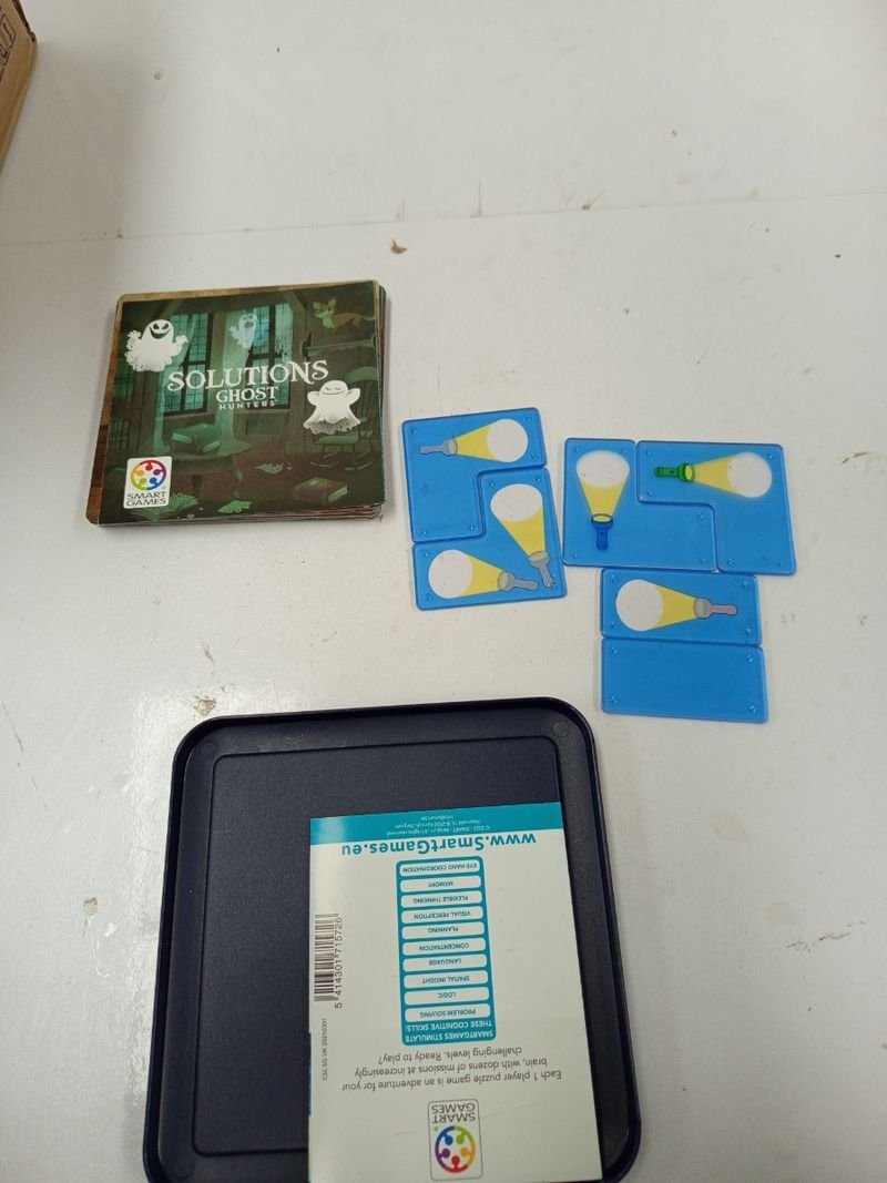 COLOCA CORRECTAMENTE TODAS LAS PIEZAS-LINTERNA DEL ROMPECABEZAS. CAZAFANTASMAS ES UN JUEGO TERRORIFICO PARA TODAS LAS EDADES. Otros datos y detalles de seguridad del producto Para 1 jugador. Habilidades: Concentración, Percepción visual, Visión espacial, Planificación, Solución de problemas