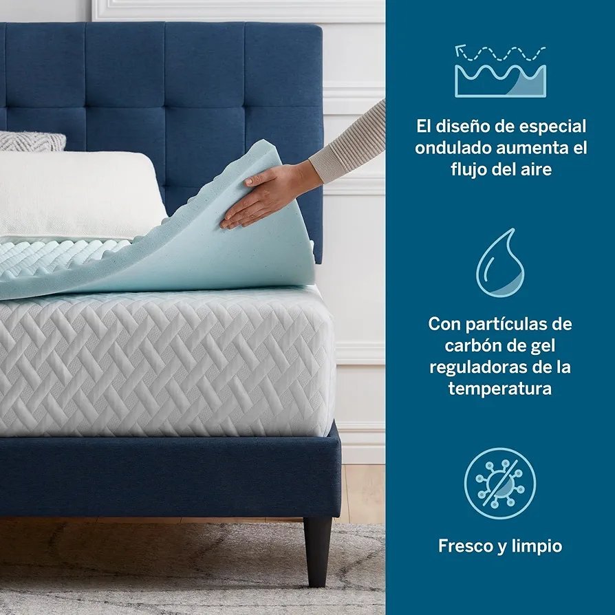 Este sobrecolchón viscoelástico tiene un diseño en forma de «huevera» que distribuye el peso de manera más uniforme que las superficies lisas y aumenta el flujo de aire para crear una sensación increíblemente transpirable y adaptativa.